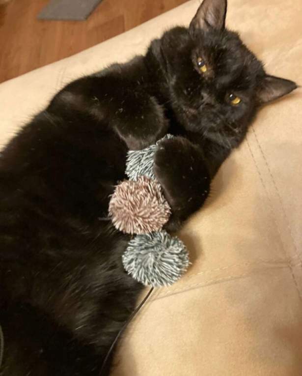 Сейчас Черныш красивый, блестящий, как норка, толстенький бутуз), весит 6.300 кг, который не перестает радоваться жизни - с удовольствием кушает, любит играть с верёвочкой и игрушечными мышами. Отлично знает лоток и когтеточку, ничего не портит и не шкодит, очень умный и спокойный малыш.