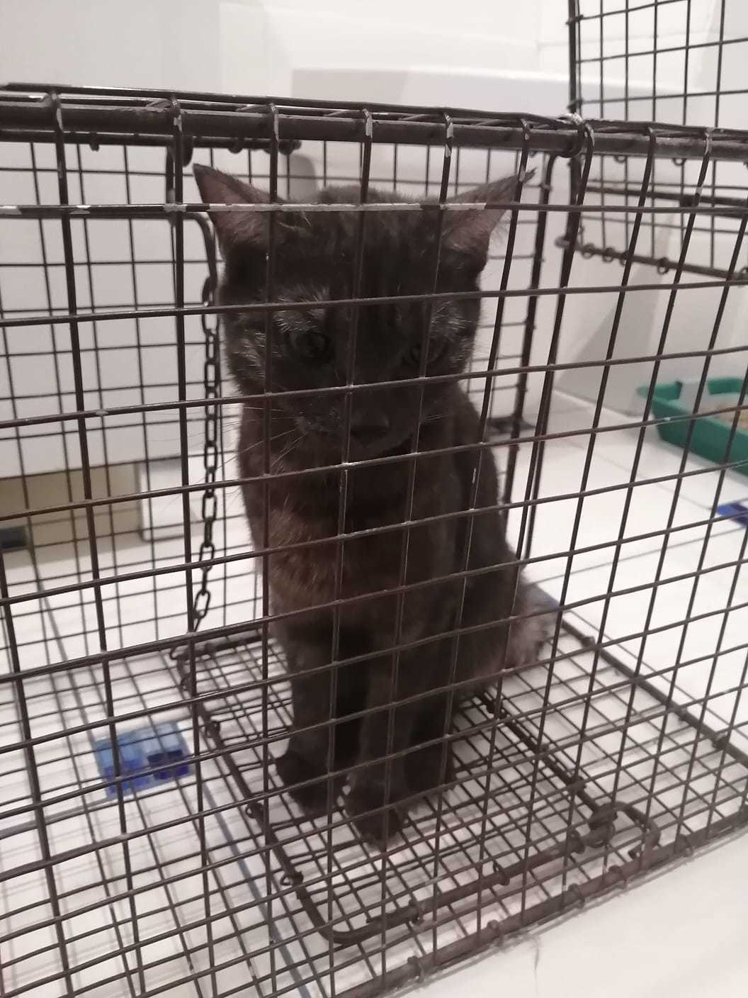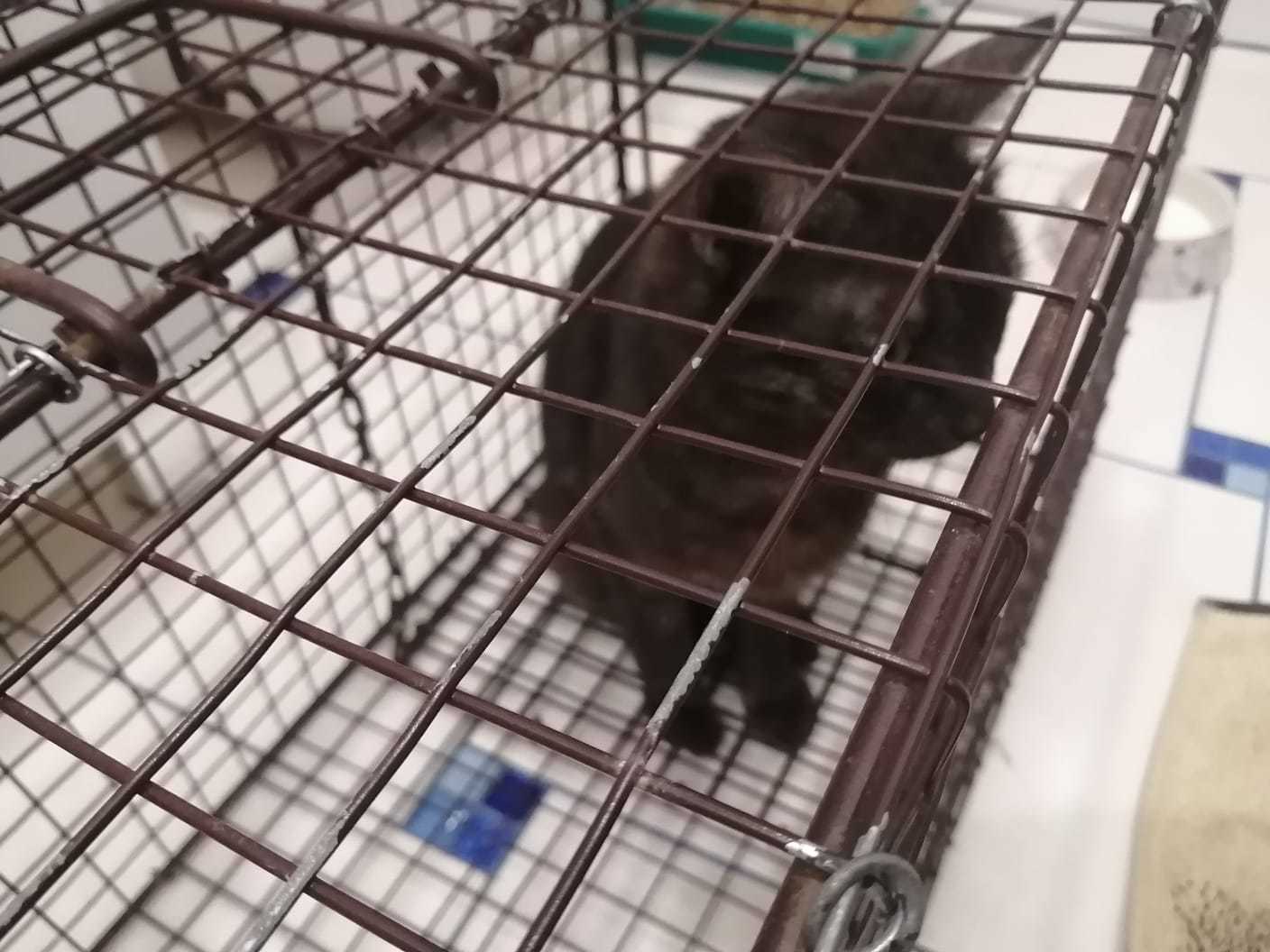 Сейчас на передержке 3 недели живет в закрытой ванной, у врачей были - все хорошо.