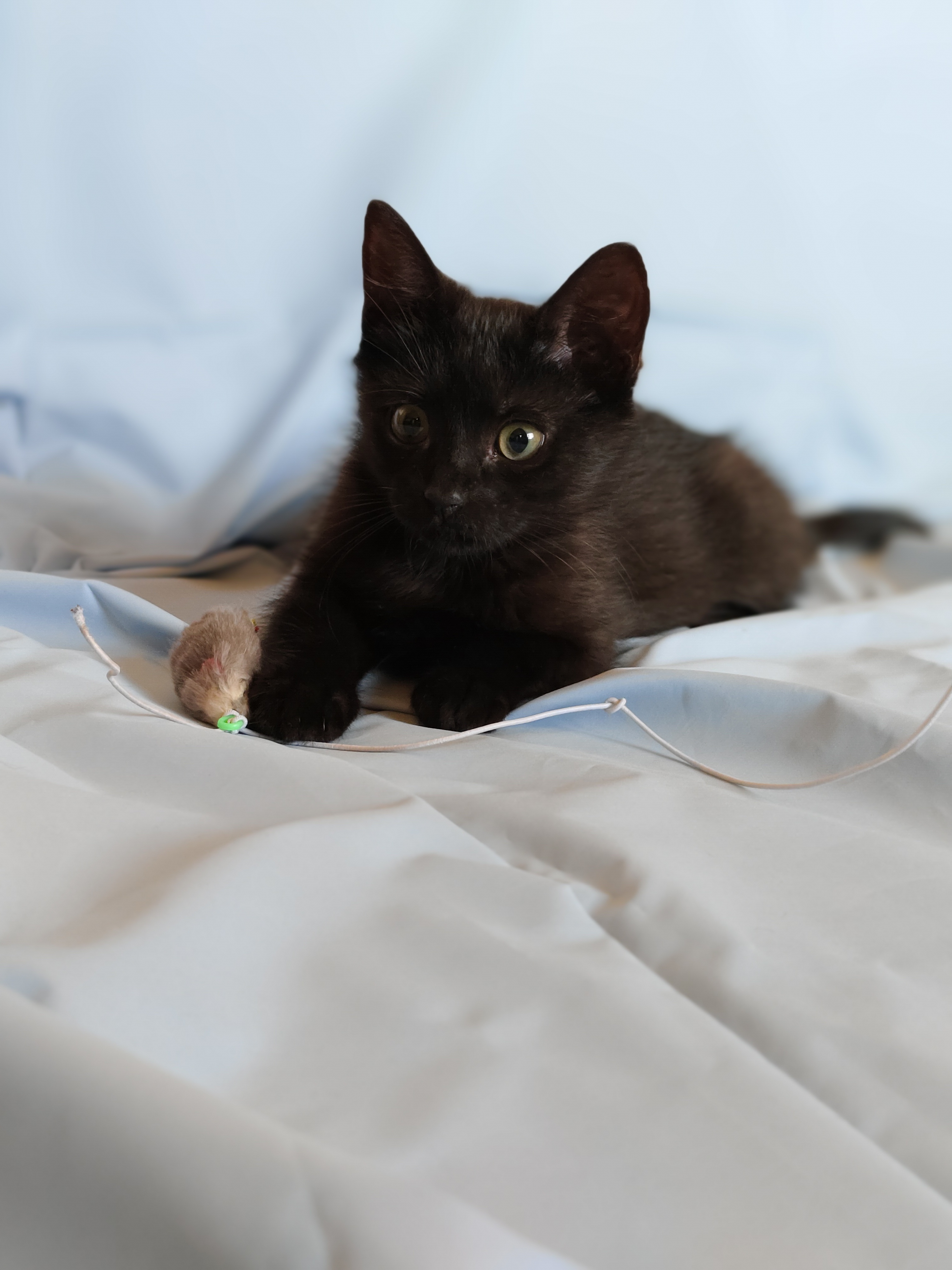 Любознательная, очаровательная игрулька. Обожает удочки и мягкие мячики.
