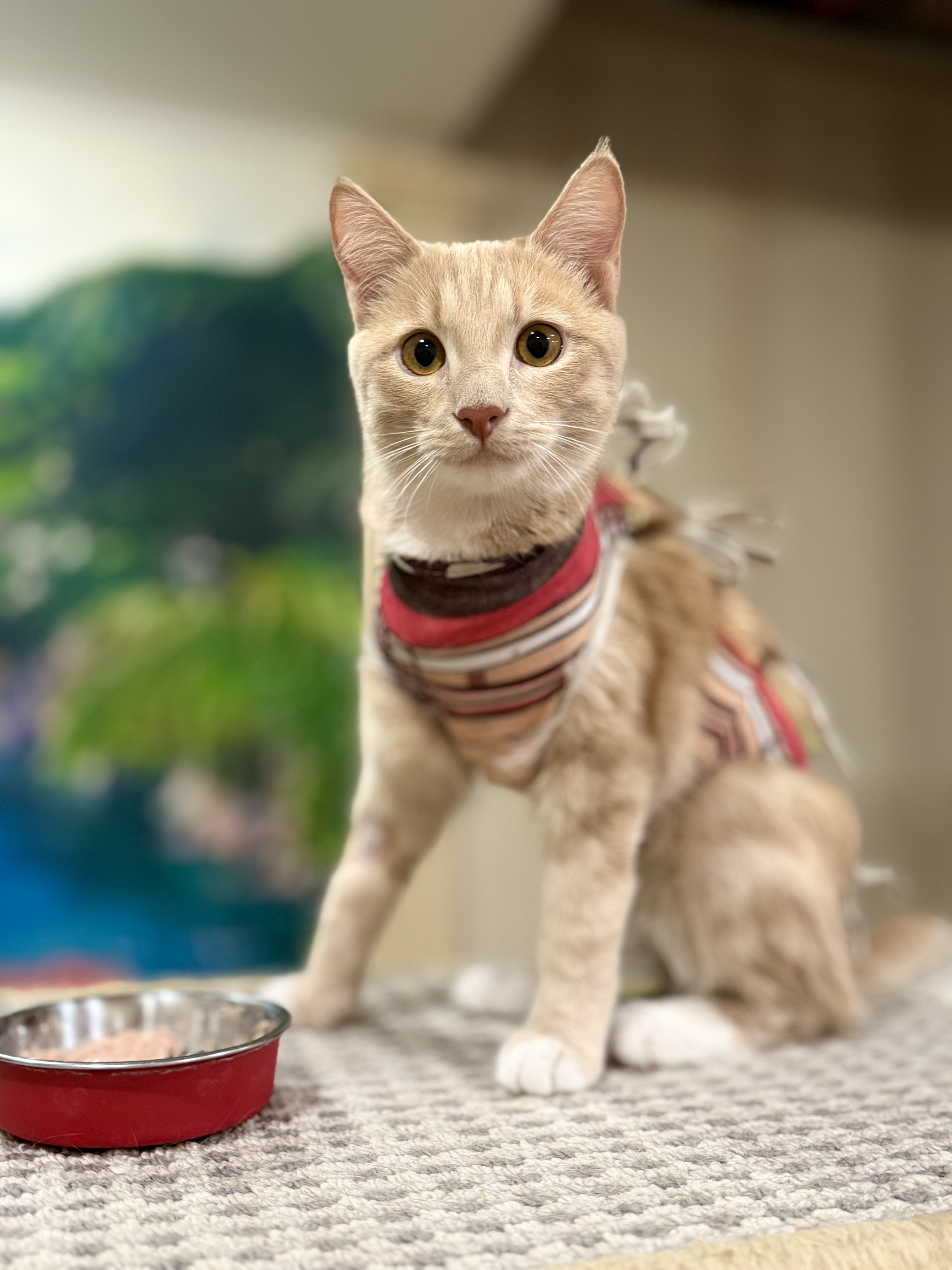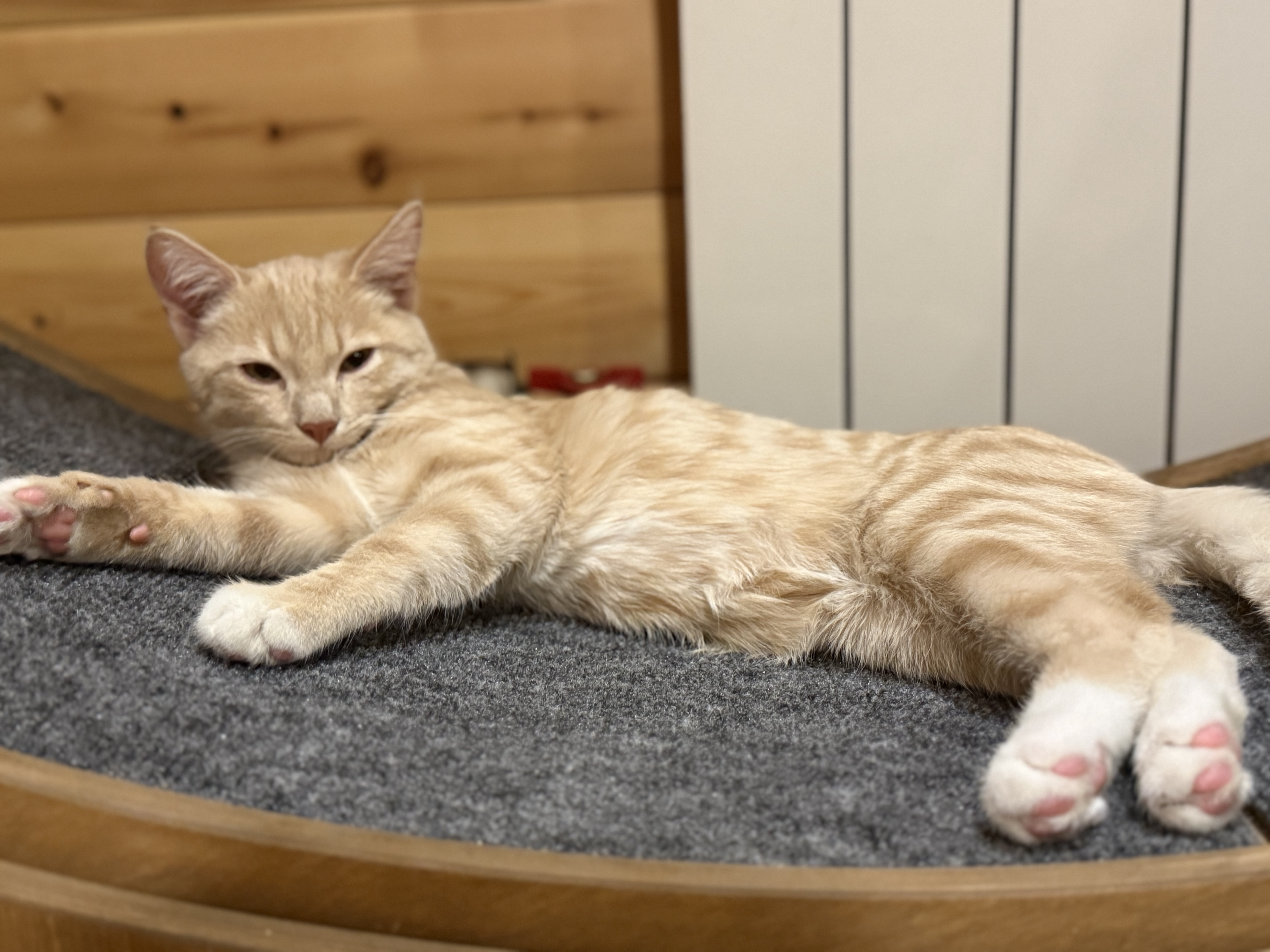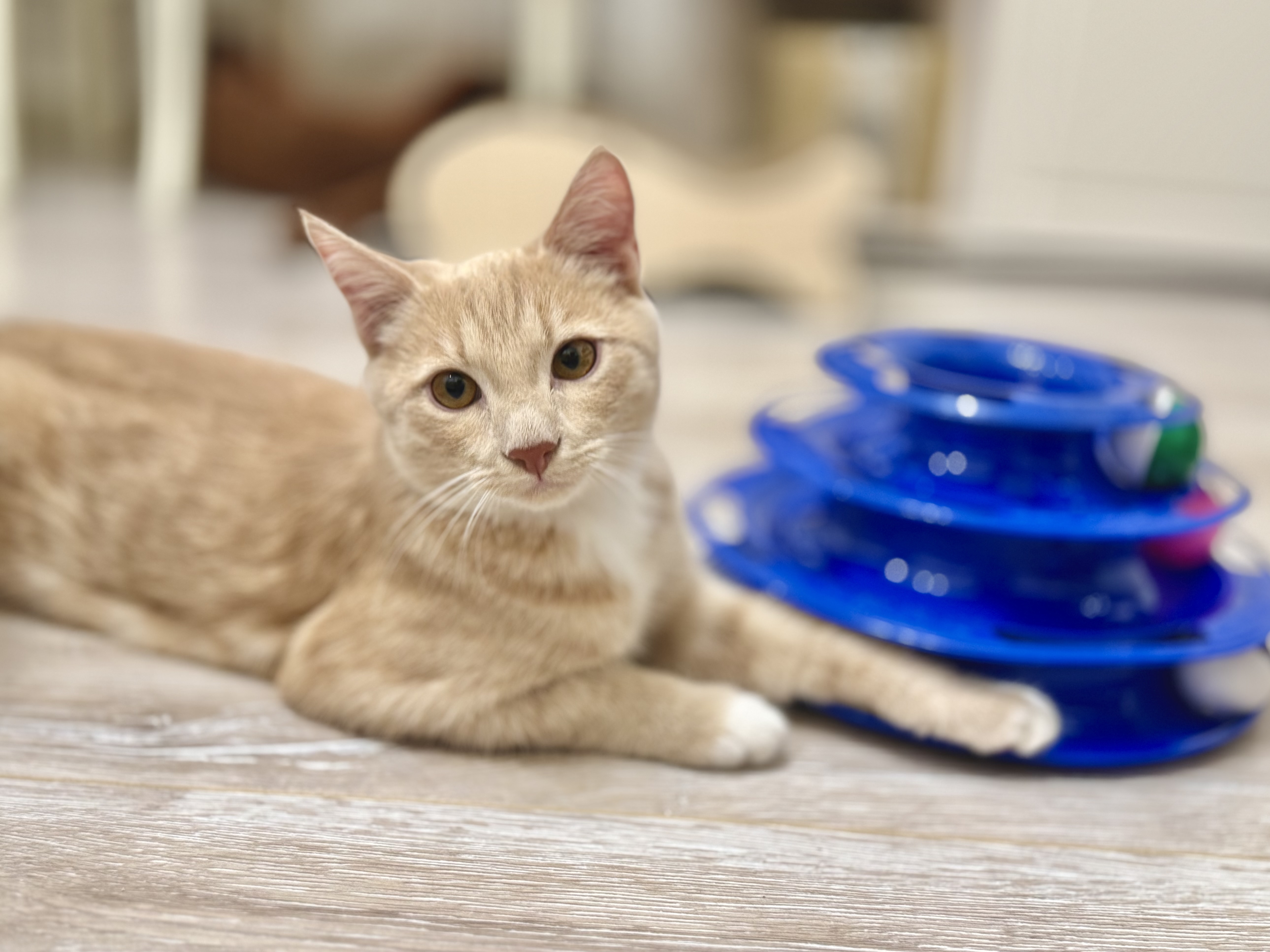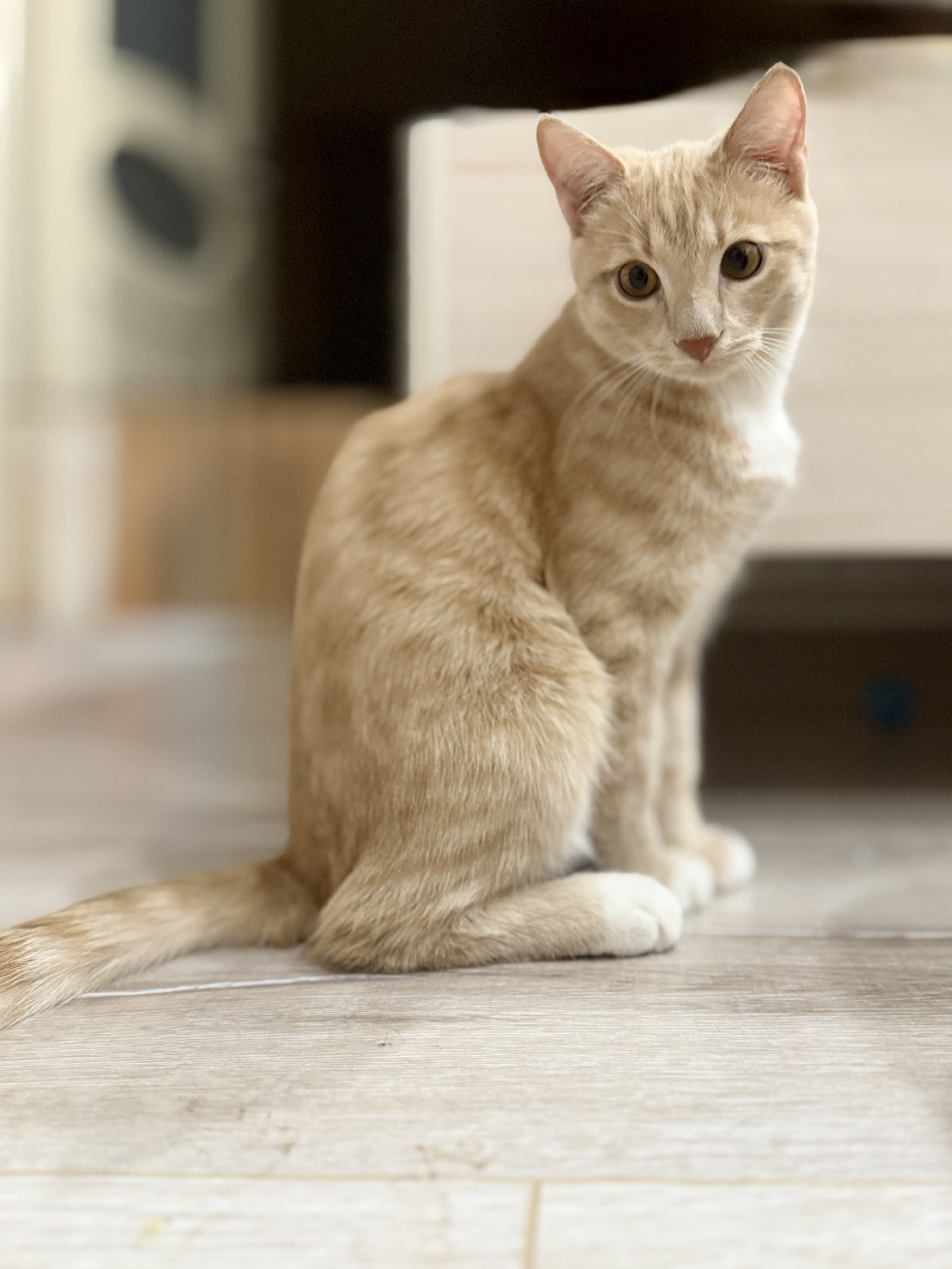 🐈 Окрас: персиковый с белой грудкой, пятнисто-полосатый, глазки - желто-песочного окраса . 🔺Особенности: очень длинный хвостик, ласковый, доверчивый, любит людей.