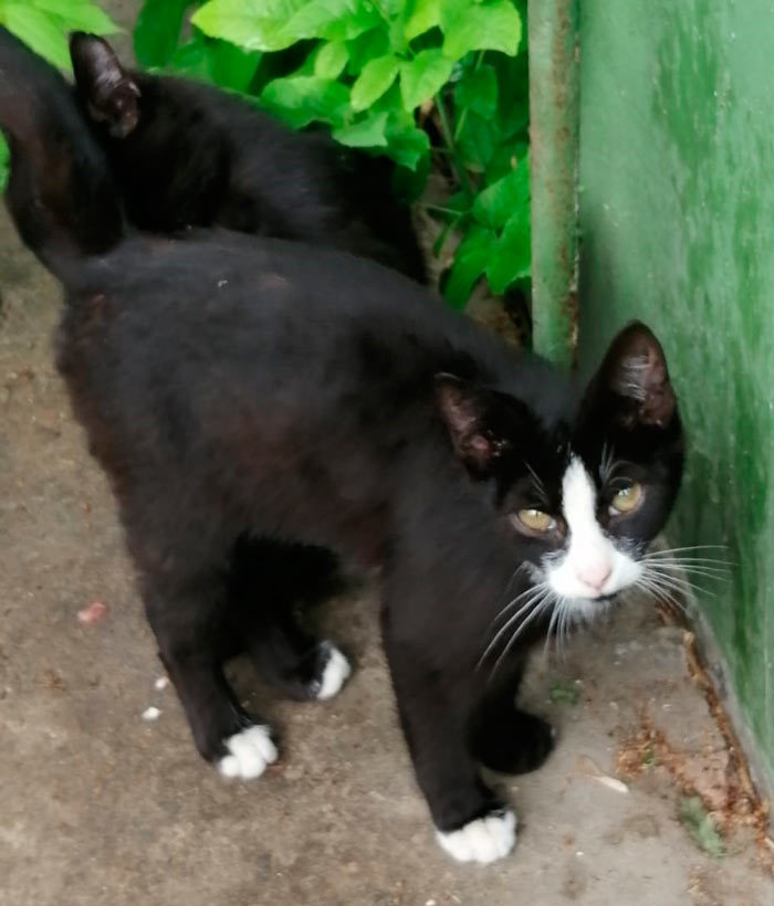1. Черный кот с белыми пятнами Мурзик. Ему 2 года. Кот ручной, ласкается к кормилице, игривый, забавный, смелый. Подскажу, как адаптировать в новом доме, где кастрировать и т.п. В случае чего - заберу и верну обратно.