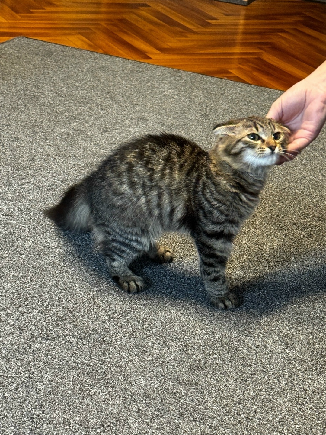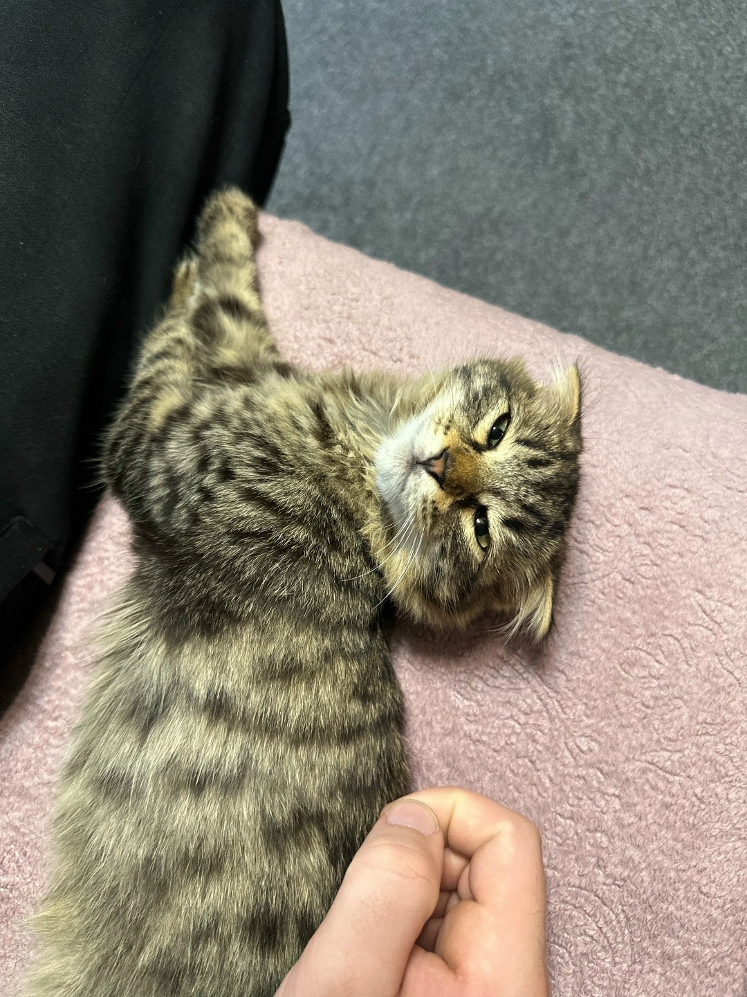 Барся. Ооочень ласковая кошечка! Обработана от возможных паразитов, поставлена первая прививка. Отличается умом, сообразительностью и хорошим аппетитом, как и полагается растущему выздоравливающему подростку. Возраст— примерно 4 месяца.