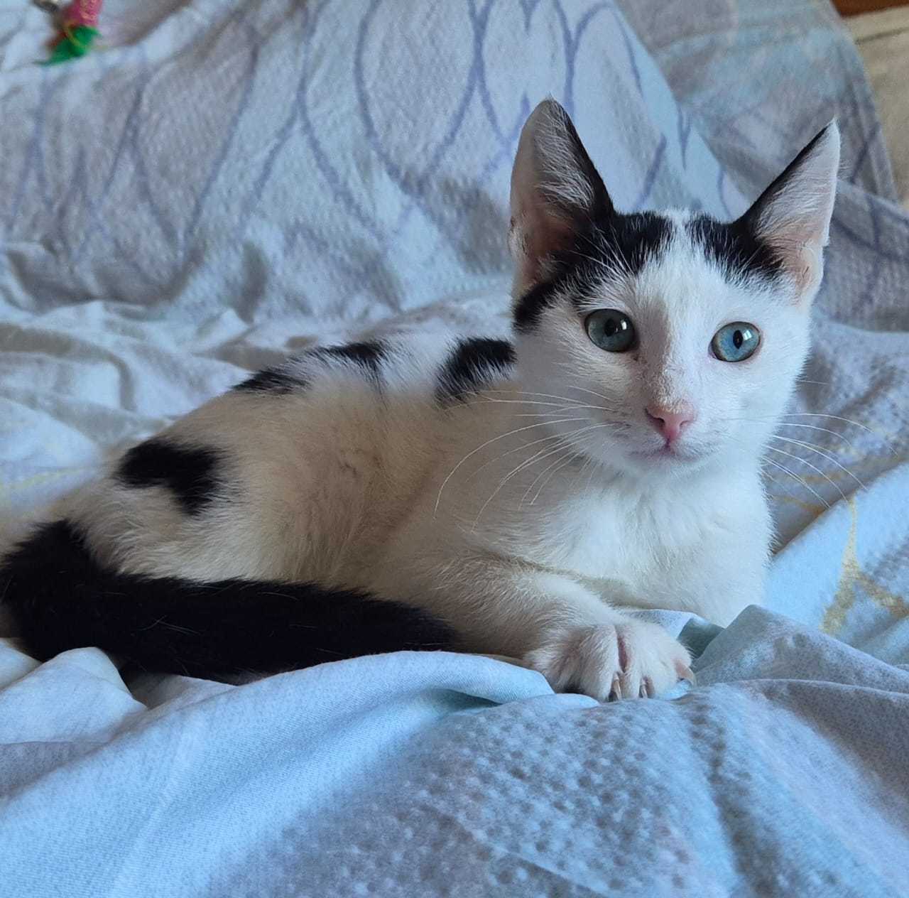 Кошечка Дульсинея при более пристальном рассмотрении оказалась котиком Дантесом) Малыш ищет дом. Котику около 4,5 месяцев, без проблем ходит в лоточек, кушает качественный сухой корм и паштеты. Мальчик был спасен вместе с братьями и сестрами из деревни в Ленинградской области. Он самый старший из котят, за всеми присматривает, со всеми играет. Любит вкусно покушать, новые игрушки. Очень-очень ласковый! Любит сидеть на руках, мурлыкать, тереться мордочкой, спать рядом с человеком, переминать лапками. У котика потрясающе красивые глаза! Иногда кажутся голубыми, а иногда зелеными. Малыш очень ждет свою семью.
