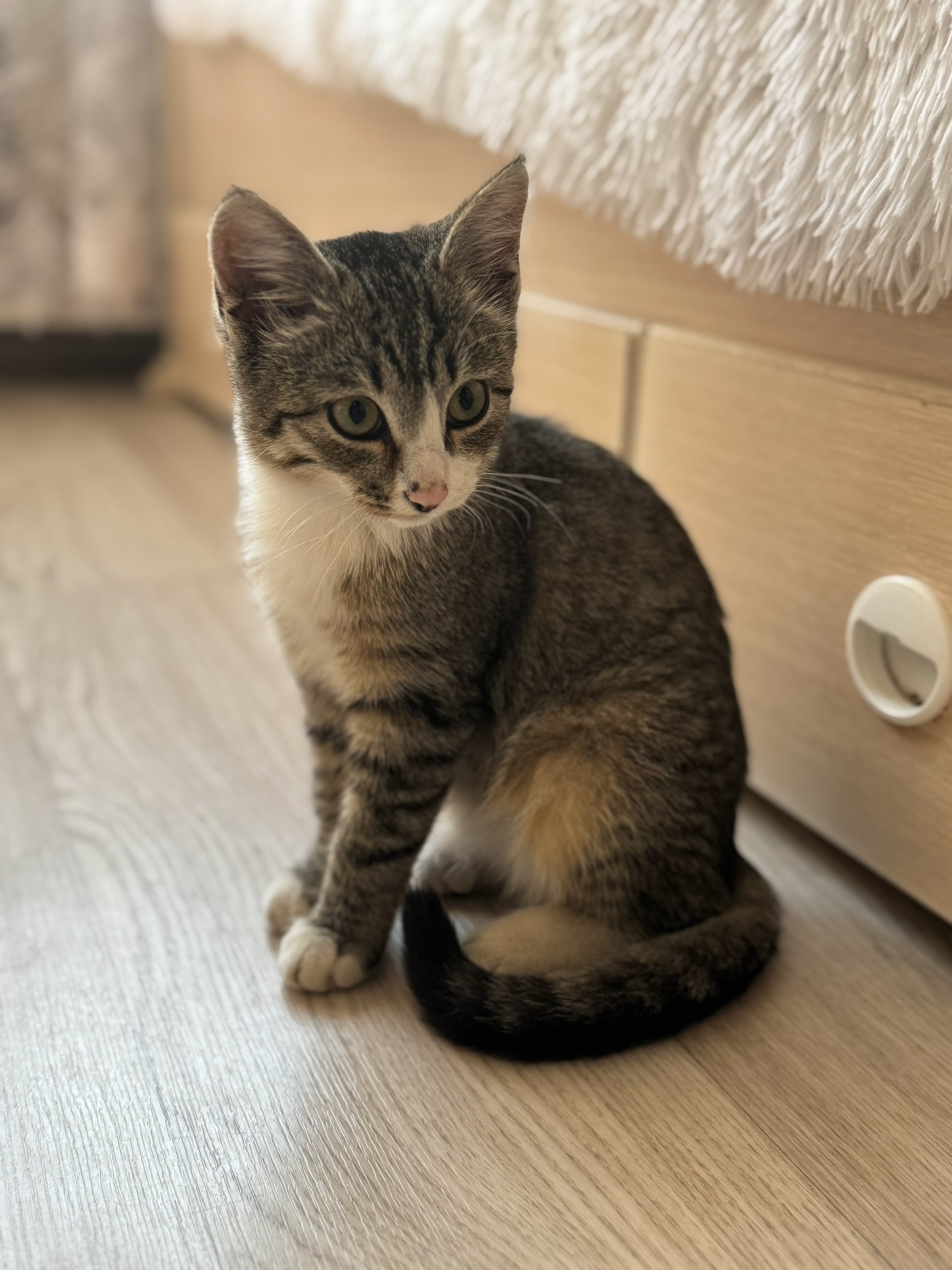 Отдам бесплатно котенка , девочку , месяцев 5. Подкинули в подвал нашего дома. Себе забрать не могу , итак много кошек. Котенок очень ласковый, послушный, мурлыкающий, игривый, кушает все , что дашь.
