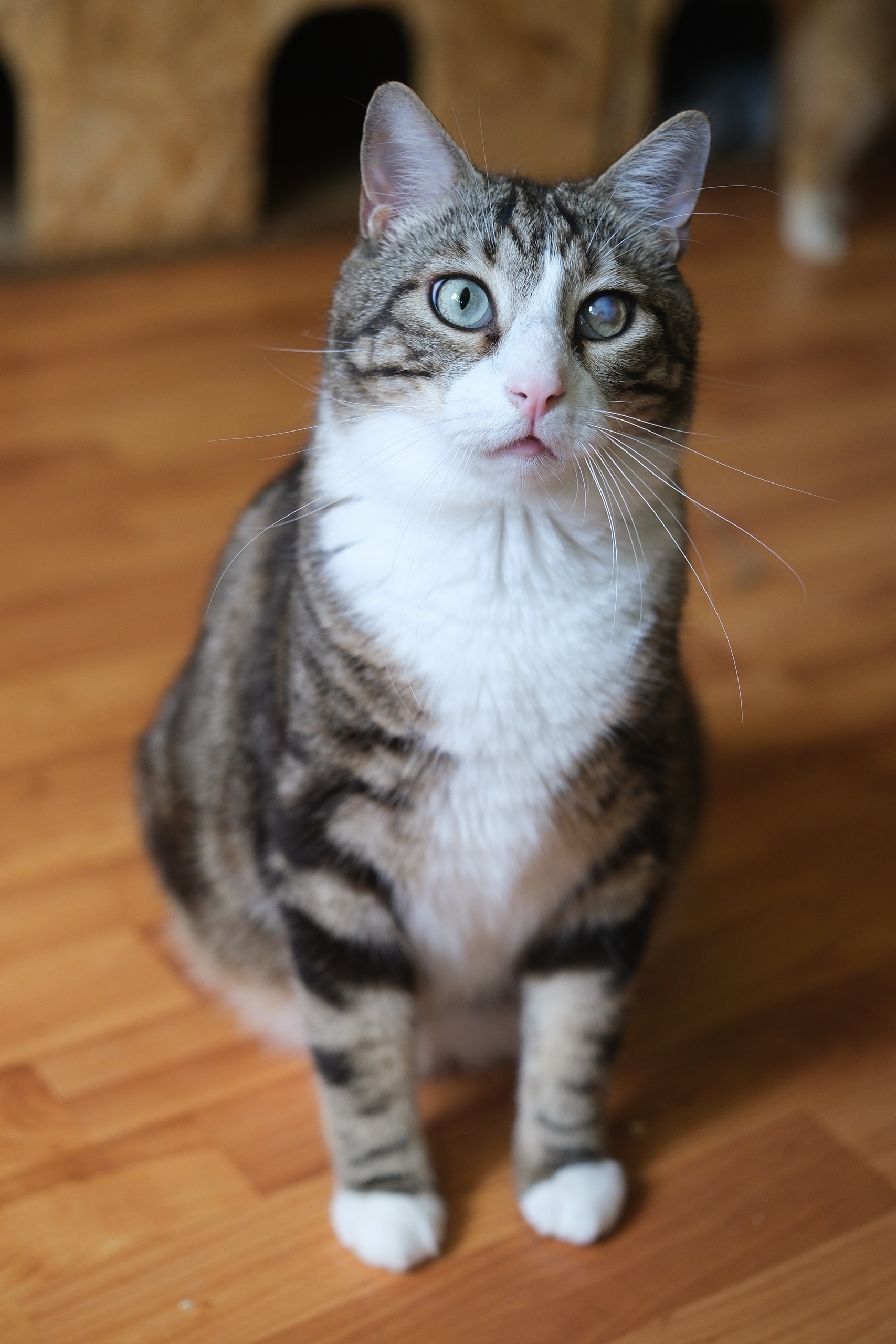 Молоденького Олеся выкинули на улицу, где он получил травму от местных котов, отсюда на память бельмо на глазу. Но Олесь от этого не стал хуже. Это самый нежный, трогательный и ищущий любви котик, которому очень нужен дом. Олесь совсем еще молод, привит, кастрирован, с лоточком на ура.