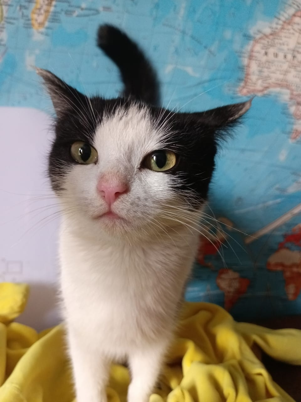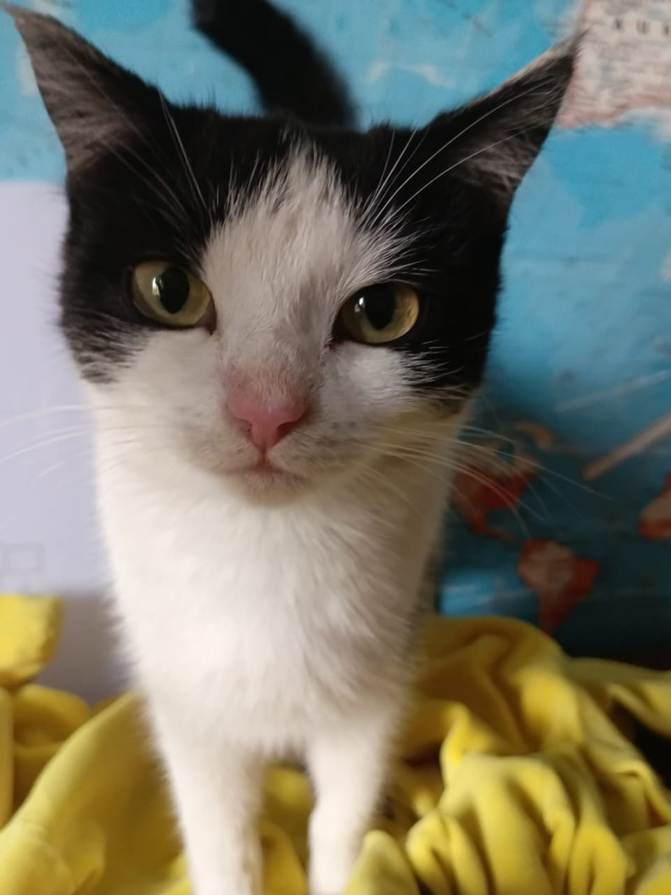 Молодая кошка, на вид 5 мес, найдена на улице, на данный момент находится на передержке.