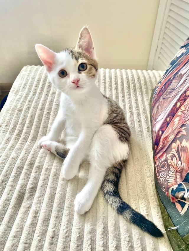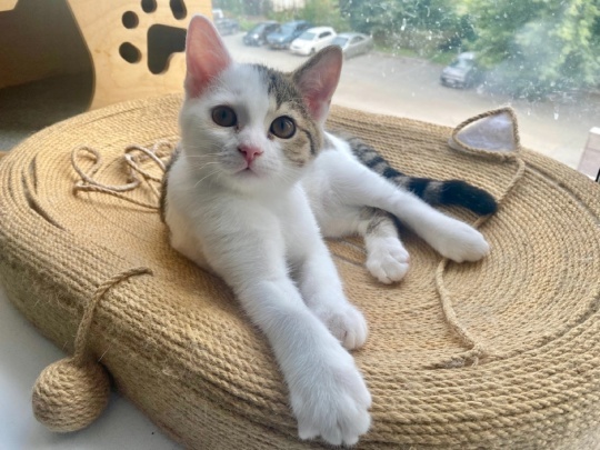 Игги сейчас 3,5 месяца, у него интересная полумаска на лице, он очень ласковый и общительный малыш. Мама - сама как большой котёнок, игривая, молодая - ей год-полтора. На правом боку у неё рыжее сердце:)