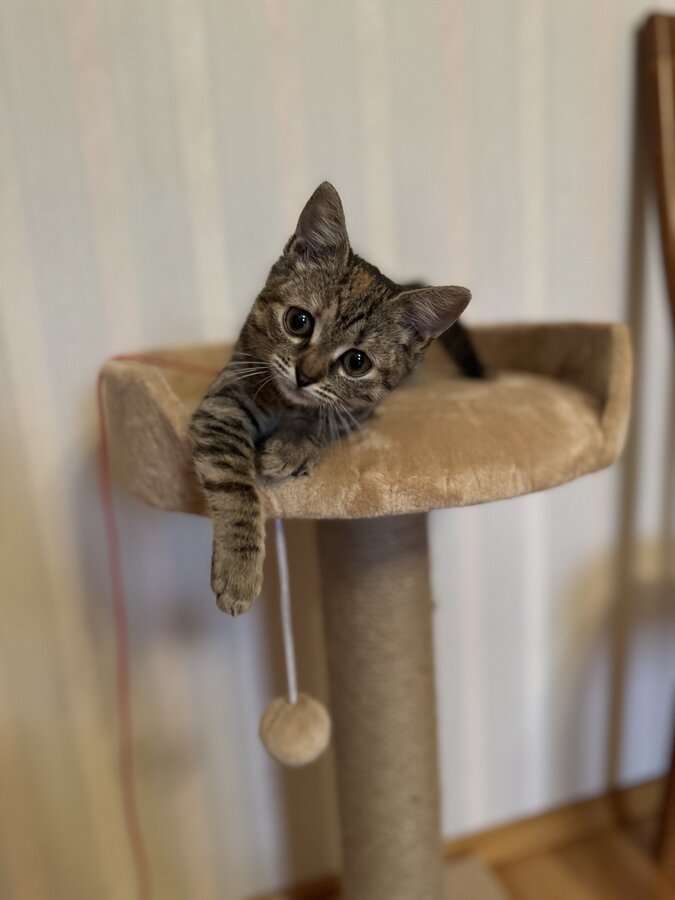 Я любопытная и игривая, но пока немного пугливая - осторожно привыкаю к людям и понемногу строю контакт.