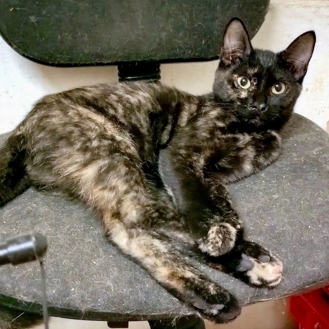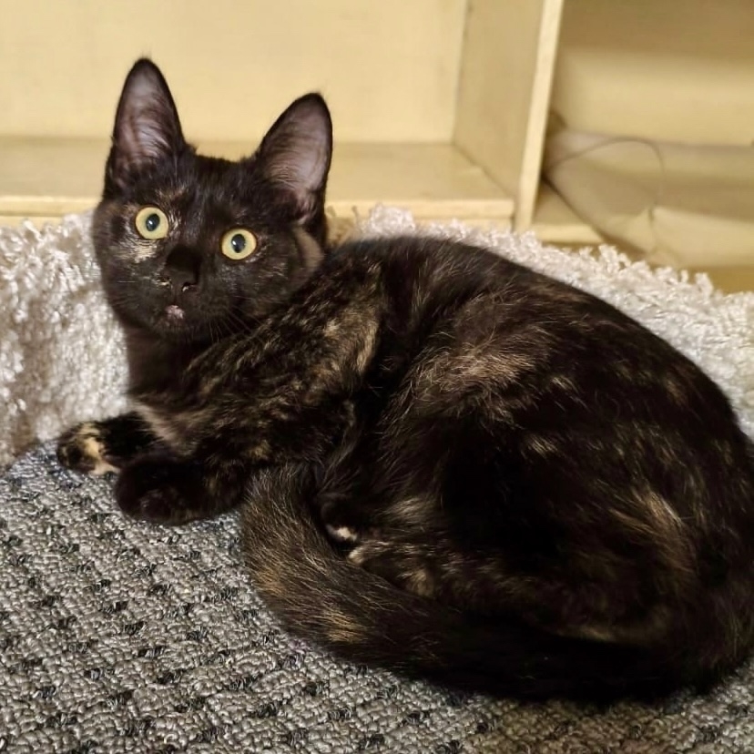 Она очень красивая - блестящая шерсть, забавные большие ушки, интересный черепаховый окрас. Очень миниатюрная по размеру