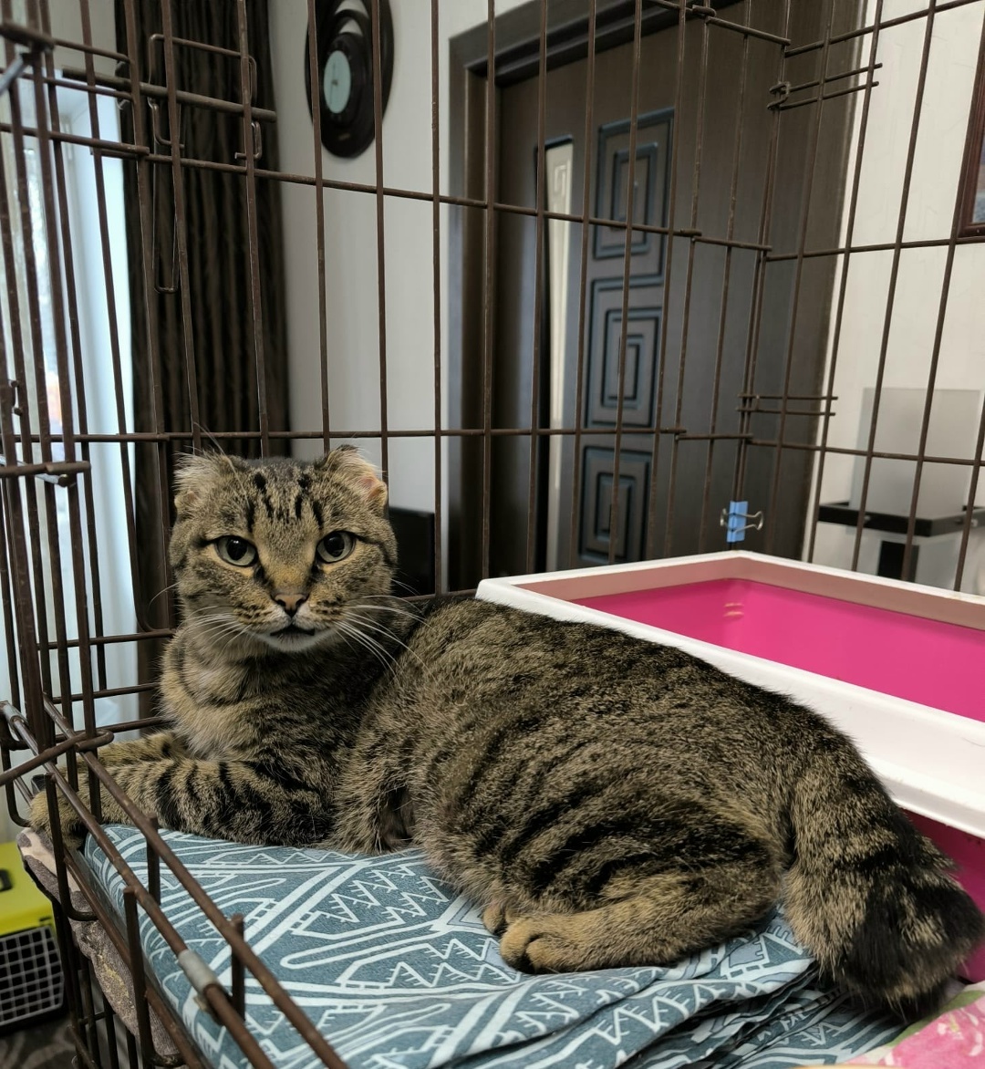 Возраст девочки примерно полтора-два года, она стерилизована, обработана от паразитов и приучена к лоточку на 5+.