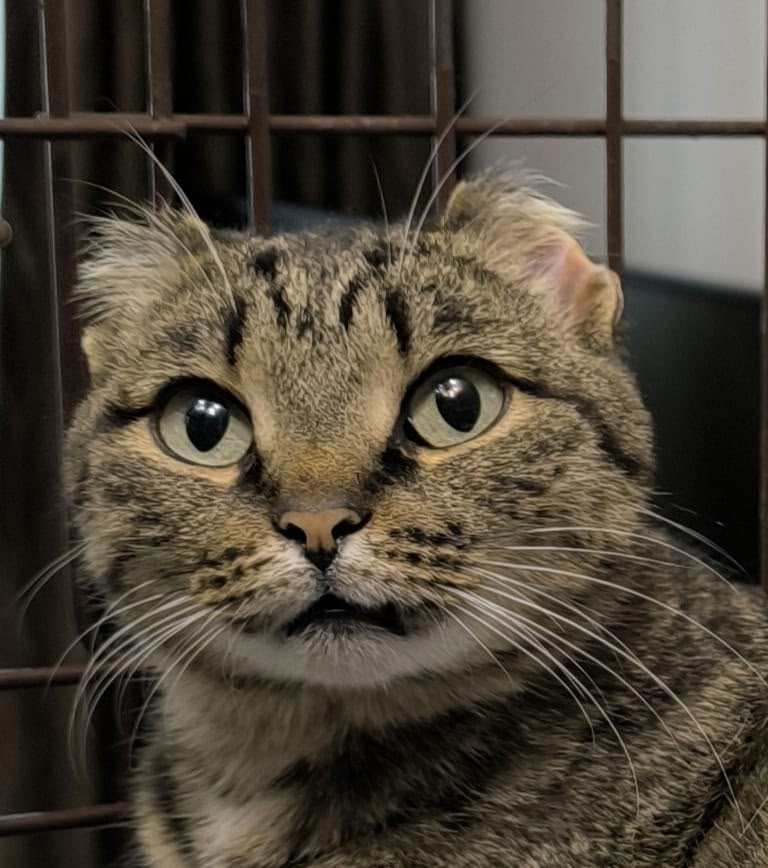 Мы назвали еë Тихоней за удивительно кроткий характер, за добрый нрав и тихий-тихий голосок, которого практически не слышно! Тихоня даже на передержке, в клеточке счастлива, что она в тепле, накормлена и обласкана! Для неё в сравнении с прежней жизнью здесь просто рай!