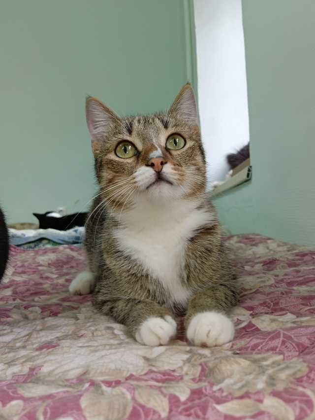 Он не кусается. Не злой. Просто он хромает на одну лапку. Это не мешает ему бегать, гоняться за кошачьими удочками, быть впереди всех при кормлении вкусняшками.