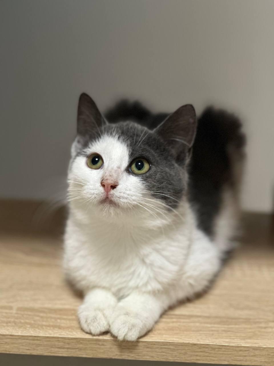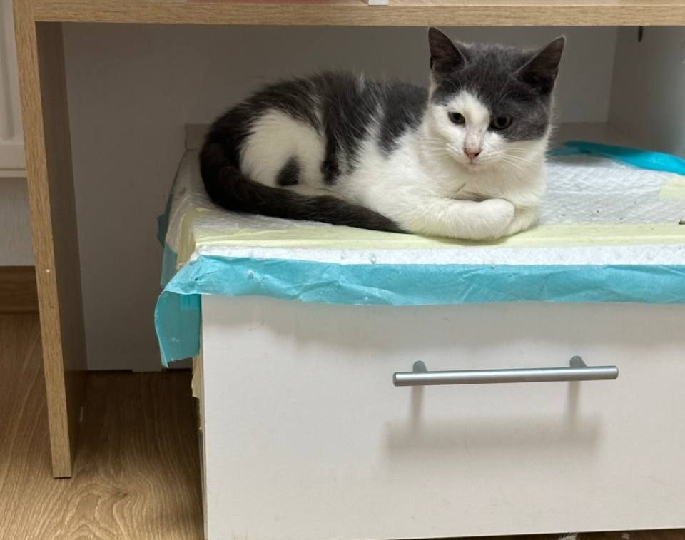 Котёнок по имени Кешью в поисках дома: очаровательный серо‑белый которебенок.