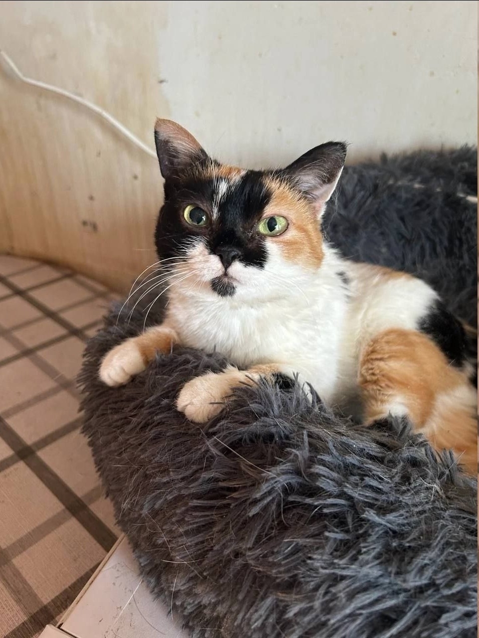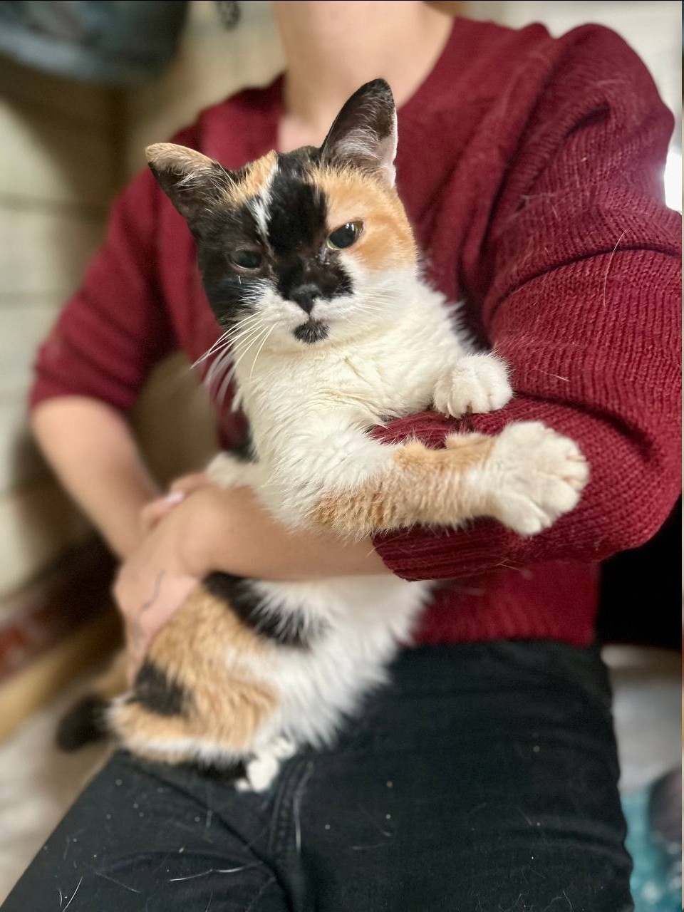 У этого маленького котогуманоида глубокие мудрые глаза, будто она уже всё знает о нашей планете и явилась сюда только чтобы получить человеческое тепло: она обожает спать на ручках и недовольно кряхтит, когда посетителям приходит время покидать приют.