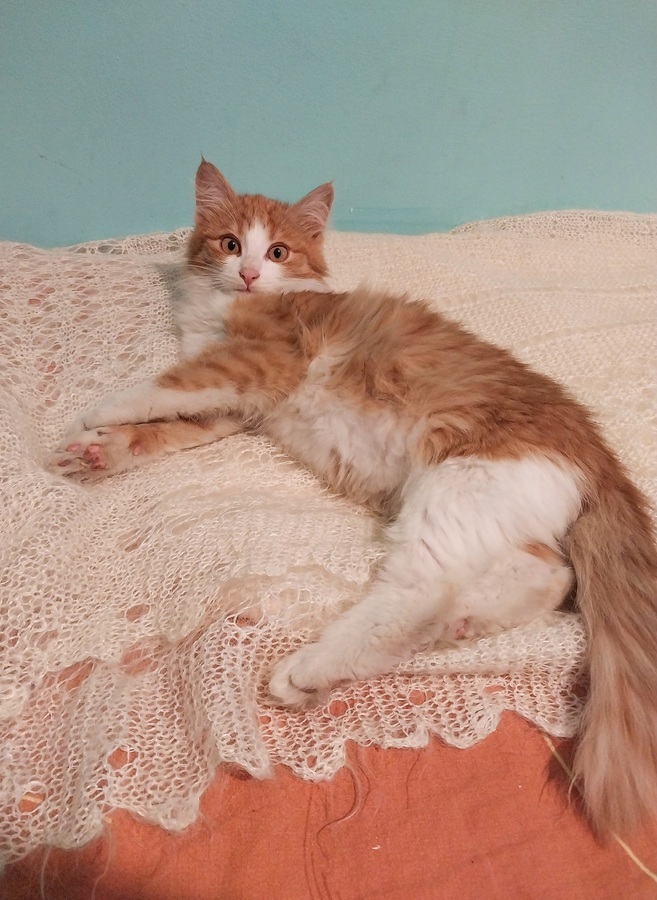 Голова, плечи и длинный пушистый хвост у него от мейн куна, остальное тело тоже красивое:) Вырастет шикарным котом.