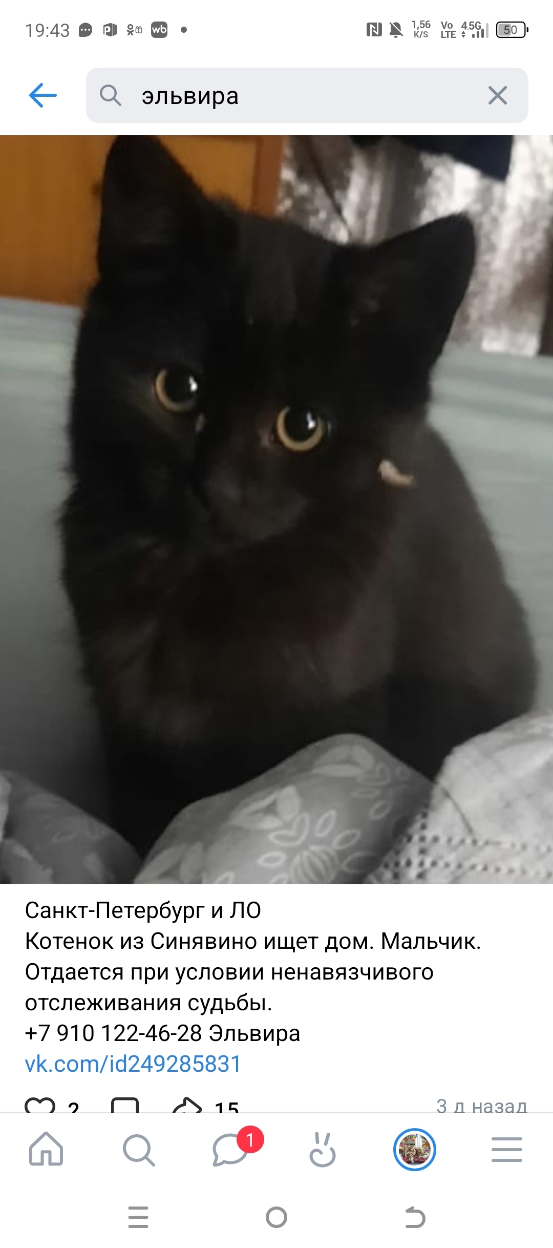 Котенок из Синявино ищет дом. Мальчик. Отдается при условии ненавязчивого отслеживания судьбы.