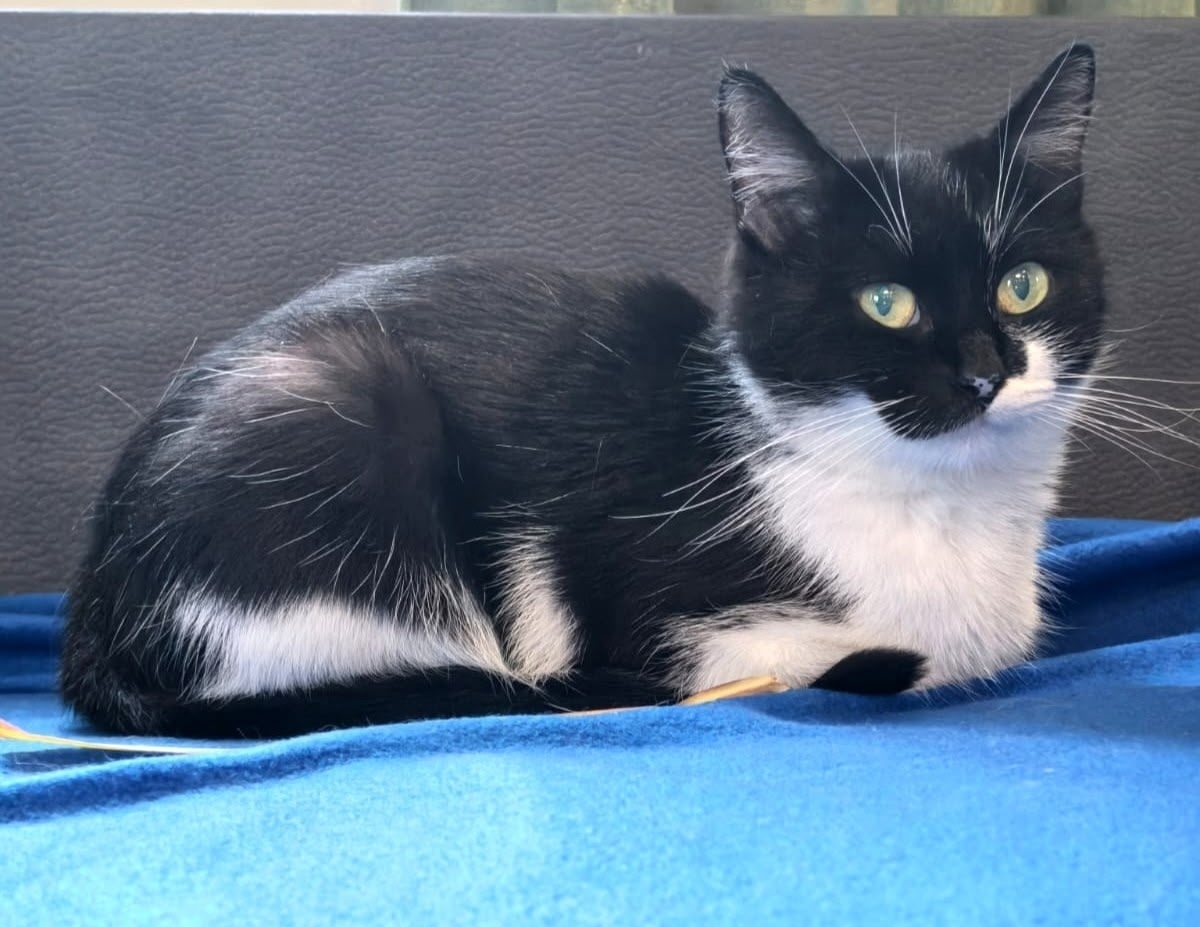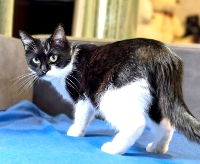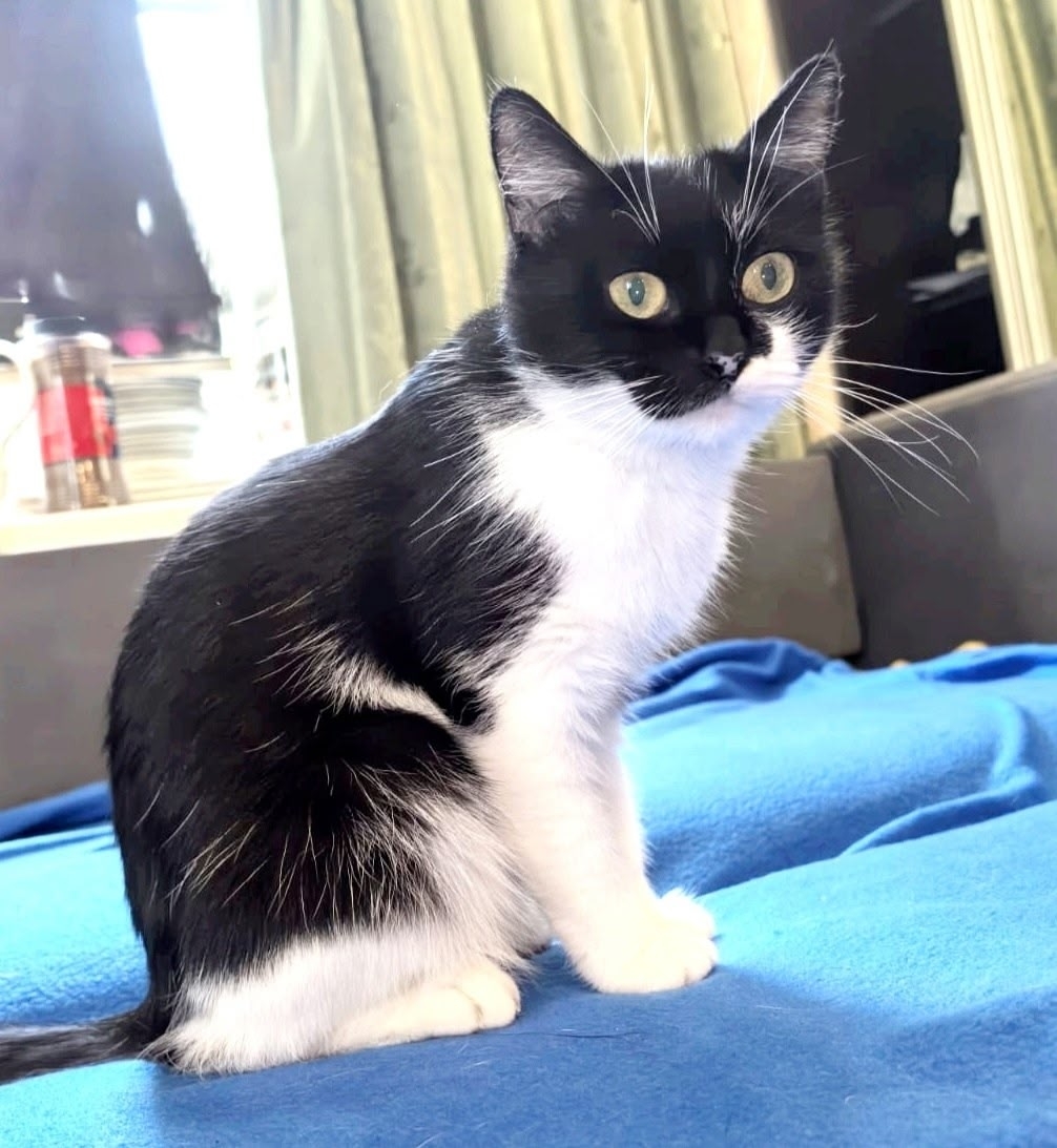 А какая красавица: выразительные большие глазки, чёрная блестящая шерстка, белые усы, белые манишка и гольфики!