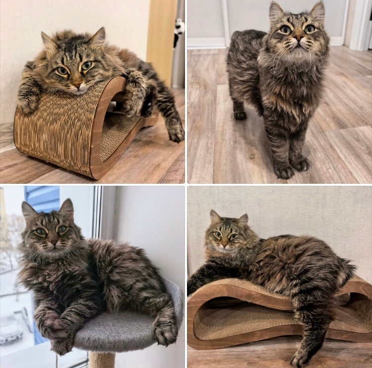 По характеру-просто прекрасный мальчик, ласковый, нежный, тактильный, разговорчивый, первые дни отсыпался, набирался сил- сейчас начинает играть и снова радоваться жизни. Скорее всего опушится и будет такой а-ля сибирячок, шерсть пока не в очень хорошем состоянии. Но на хорошем питании и в заботе- в перспективе шикарный любимец получится ❤️