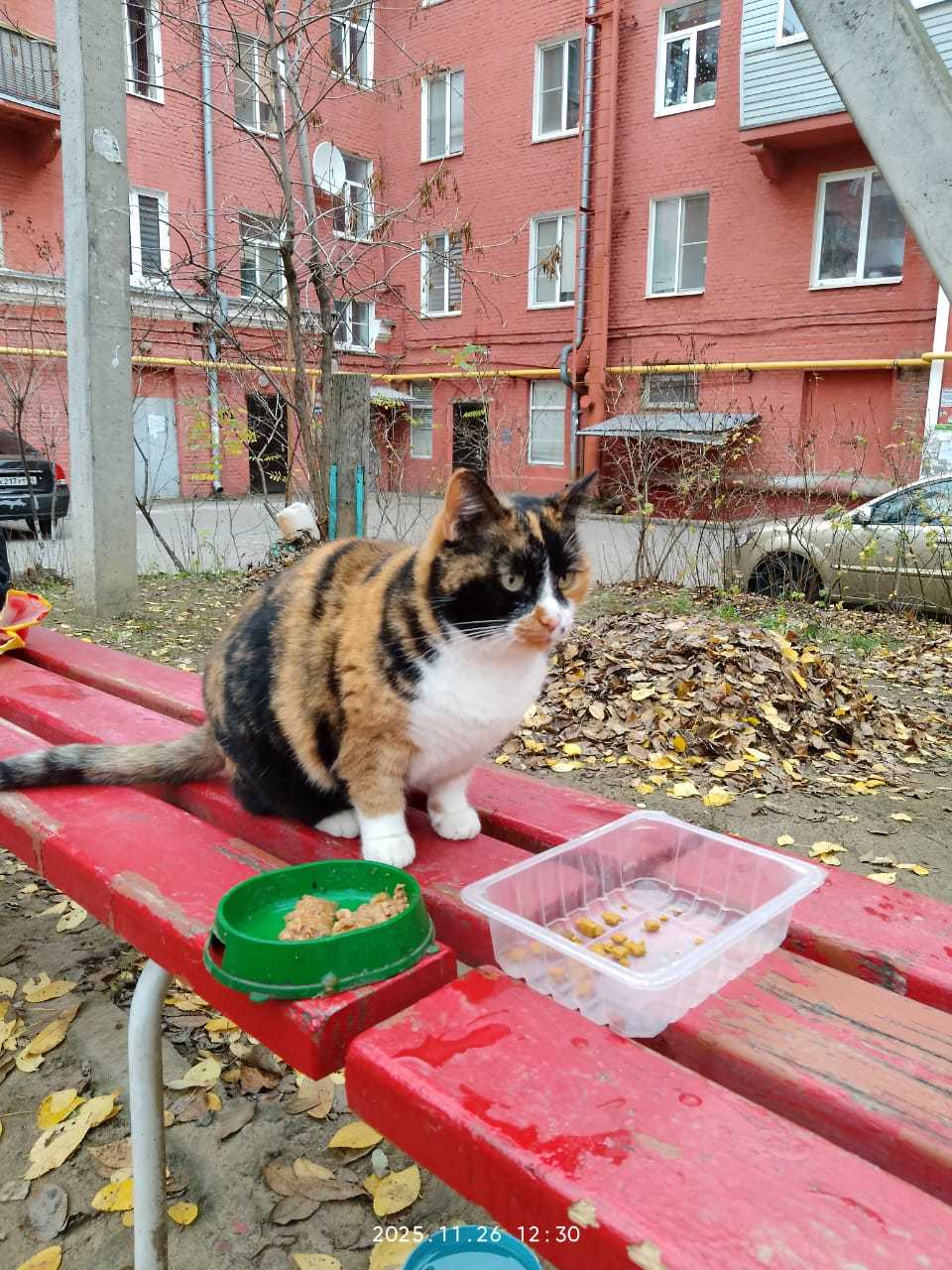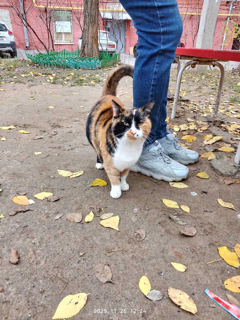 Киса живёт в подвале, прикарливает ее добрая женщина. Последнего из его взрослых "детей" недавно загрызли собаки, за кошечку тоже очень переживают!!!