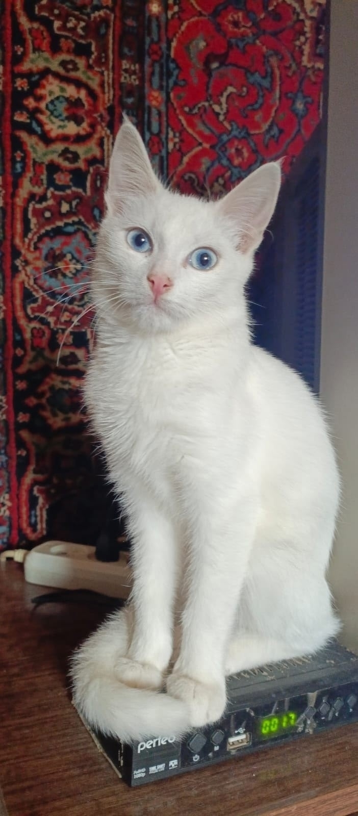 Гладкошёрстный, голубоглазый. С другими животными ладит, сам всегда первый проявляет желание играть. Залезть на кухонный шкаф, запрыгнуть на окно, покататься на шторах - он первый. Ооочень активный🚀🐈😂.