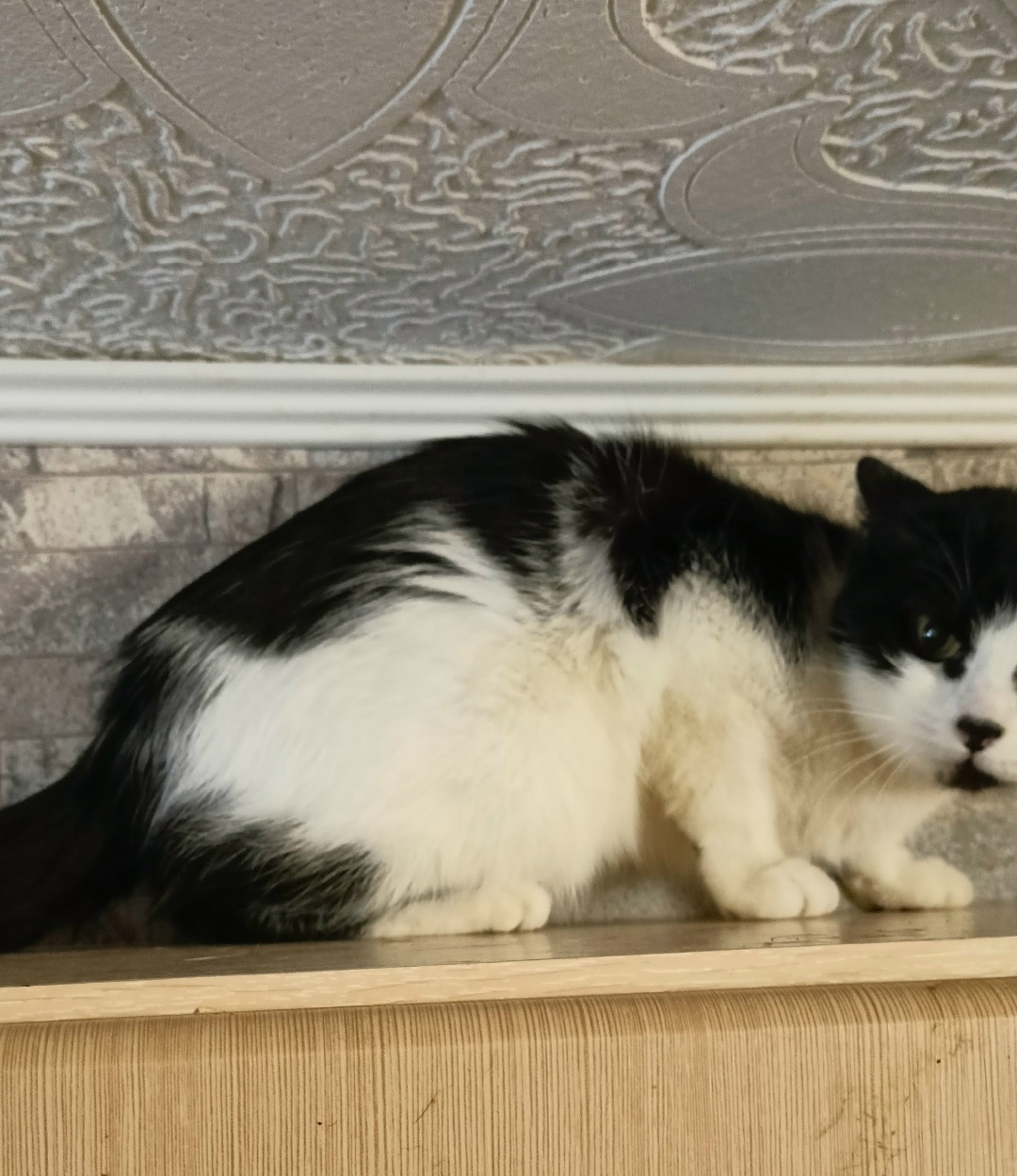 Постоянно живёт на шкафу, только вечером спускается вниз, чтобы покушать и сходить в туалет....