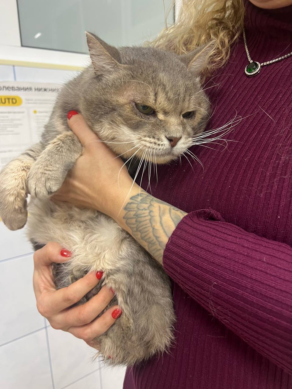 Пристраивается красивейший крупный серый кот по имени Котя.