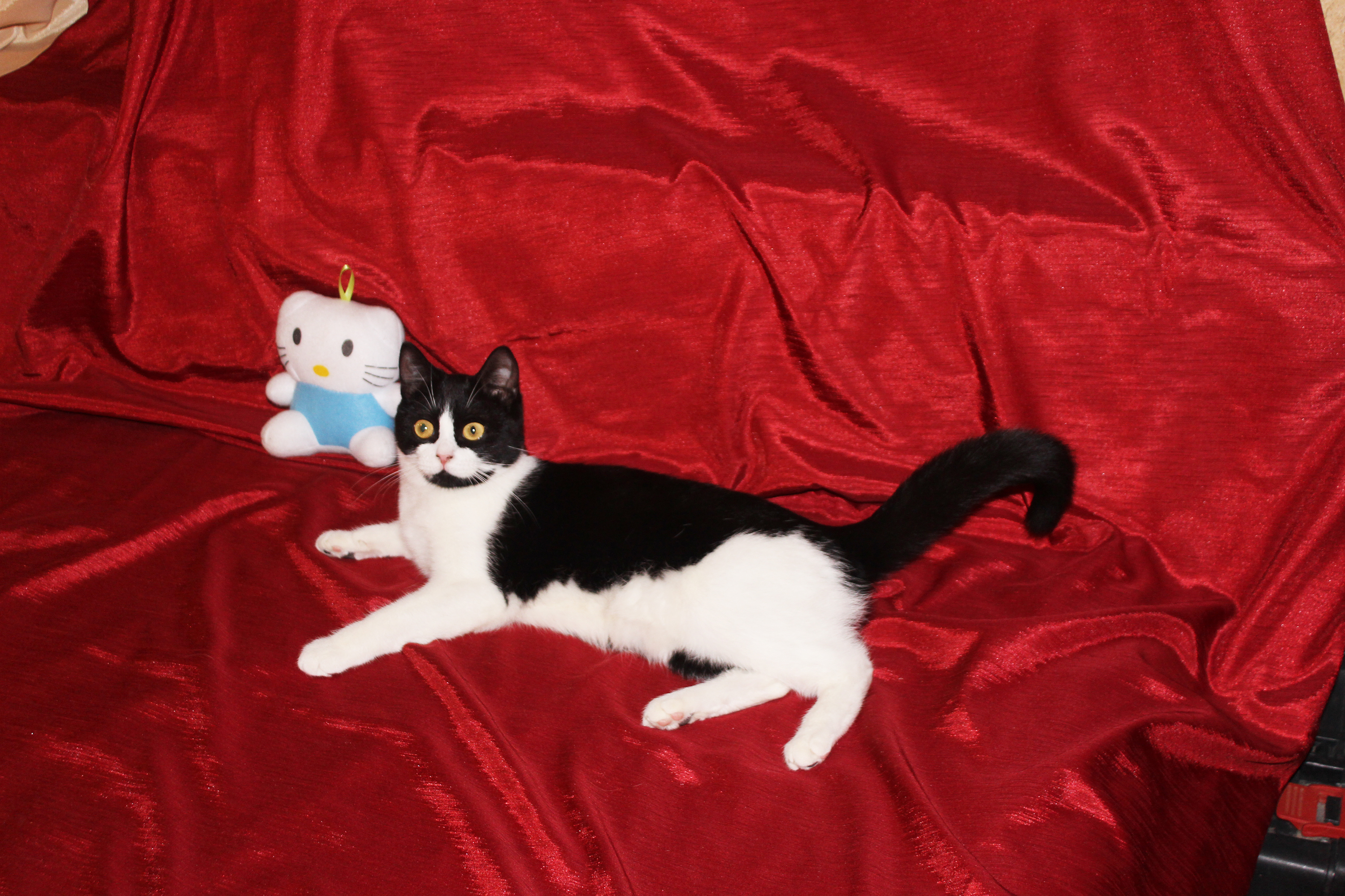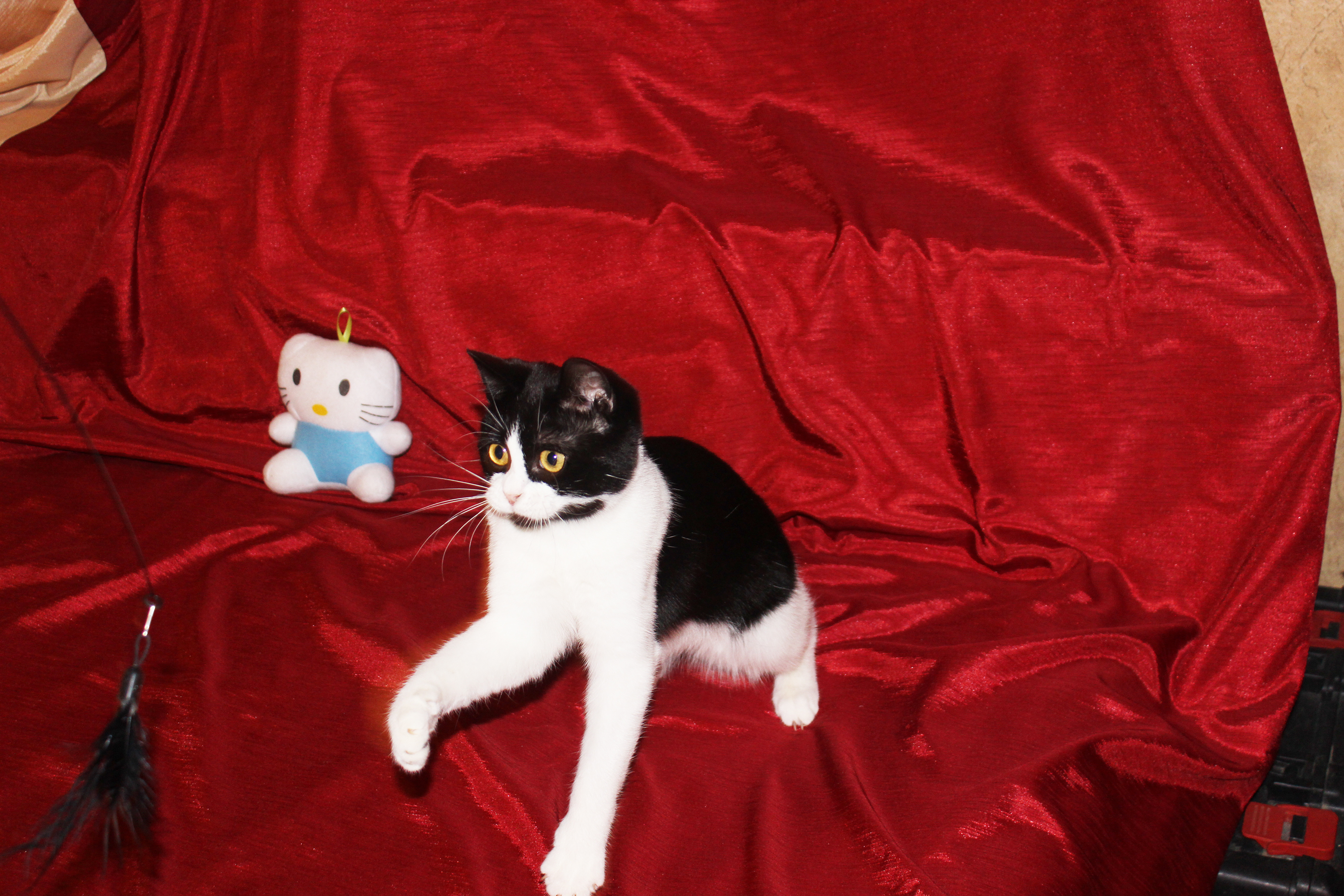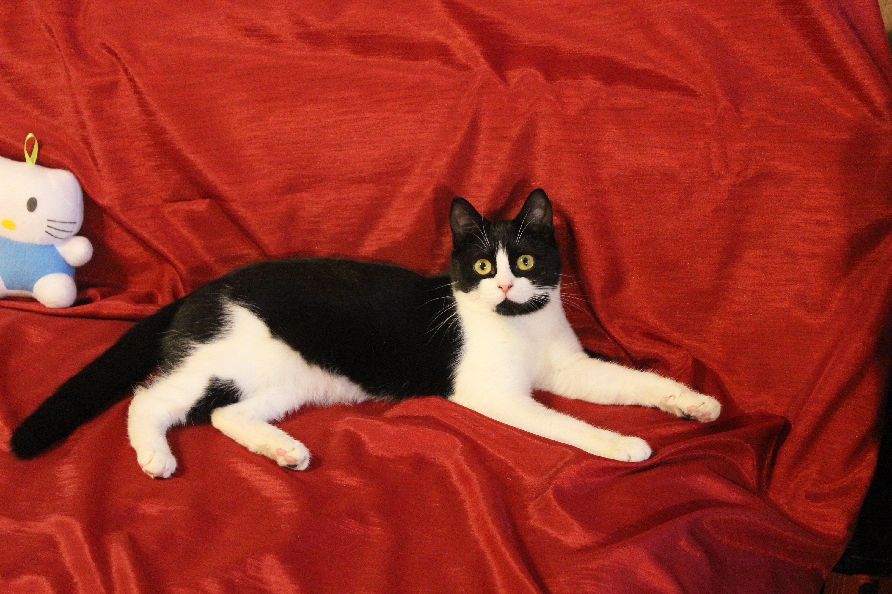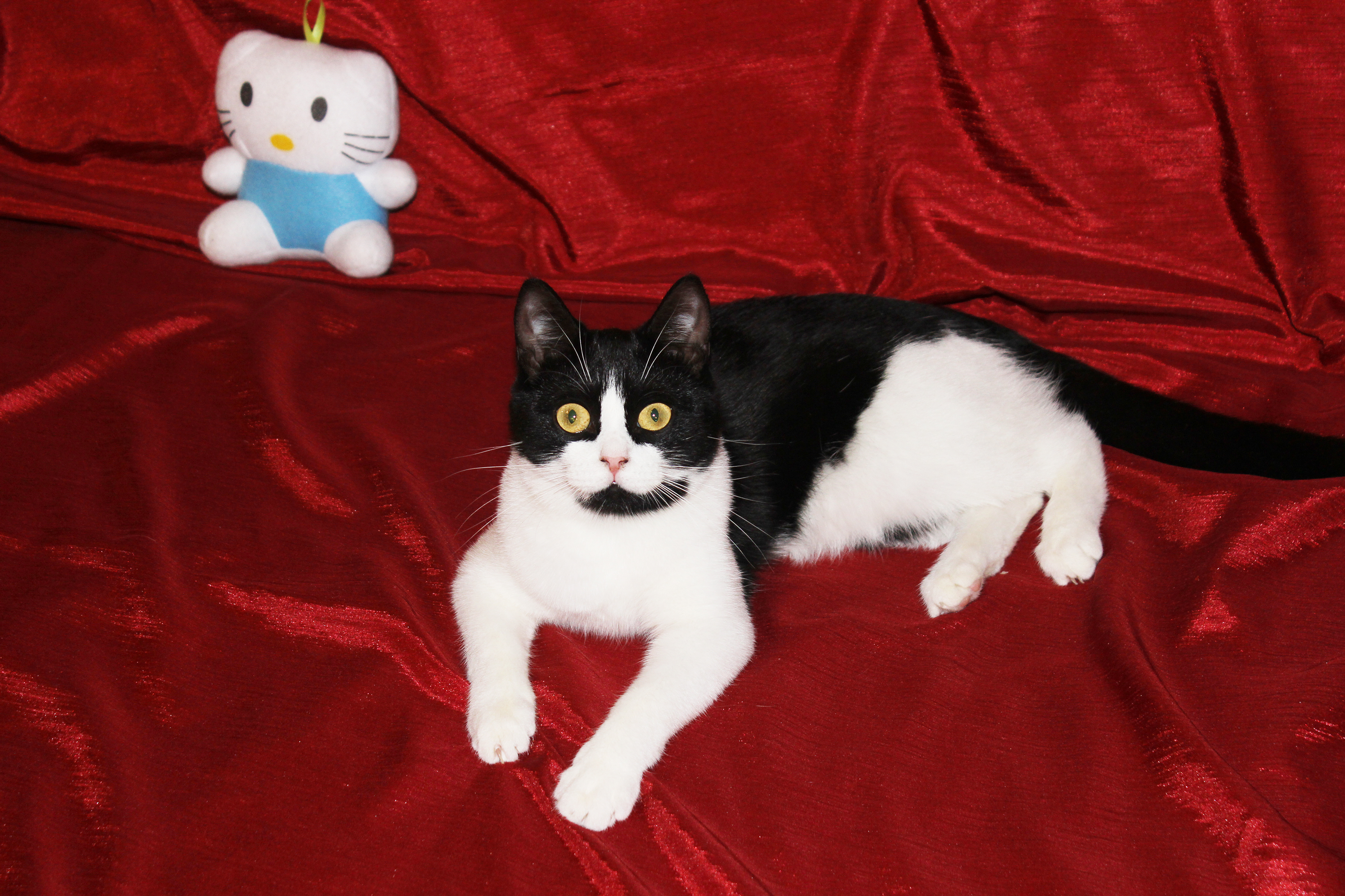 Любит хорошо и вкусно покушать, поиграть, с кошками очень дружит, с собаками не пересекается, хоть пока и живёт с ними, но не конфликтует.