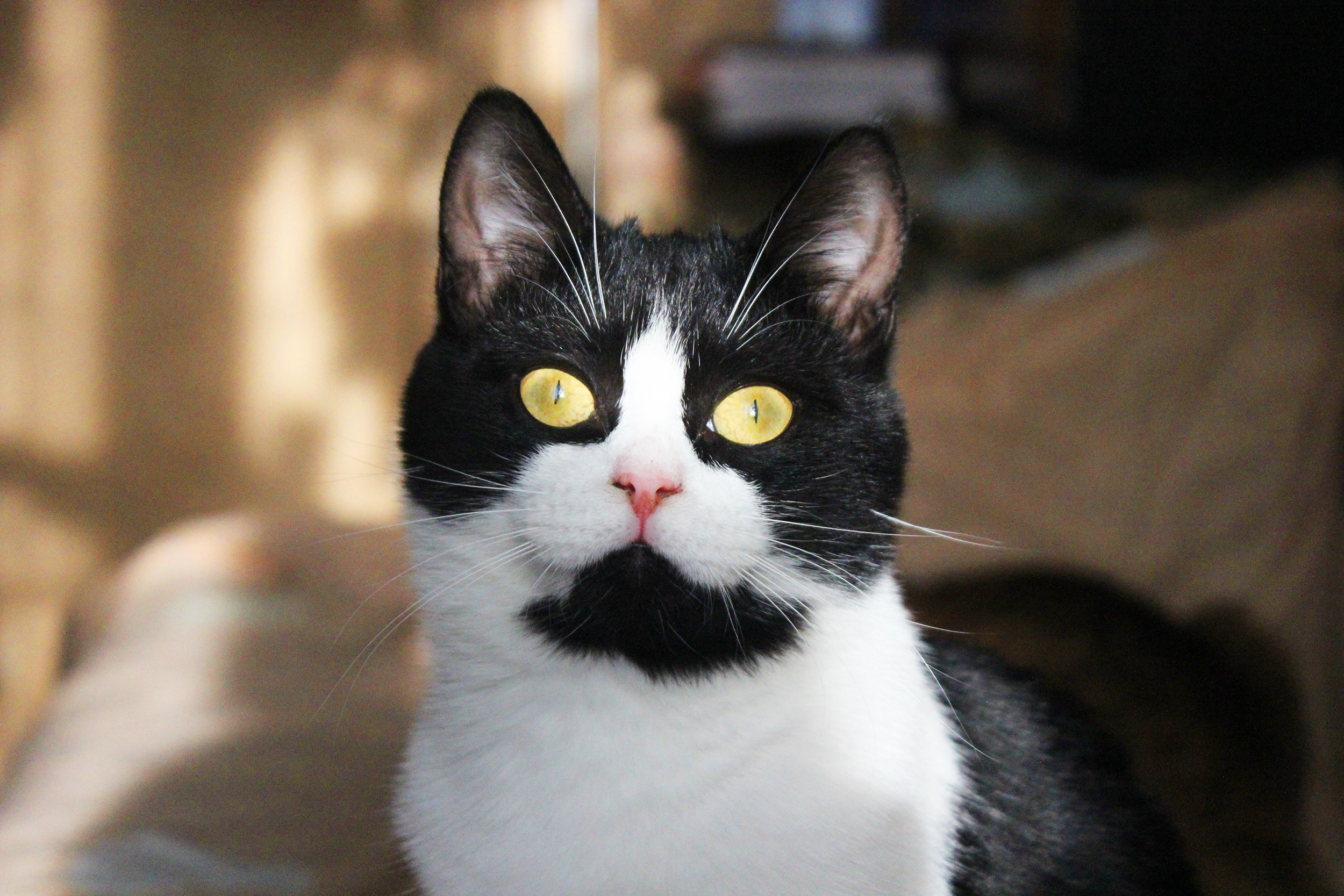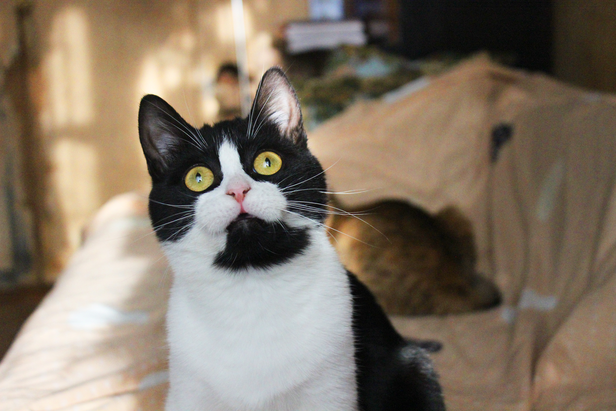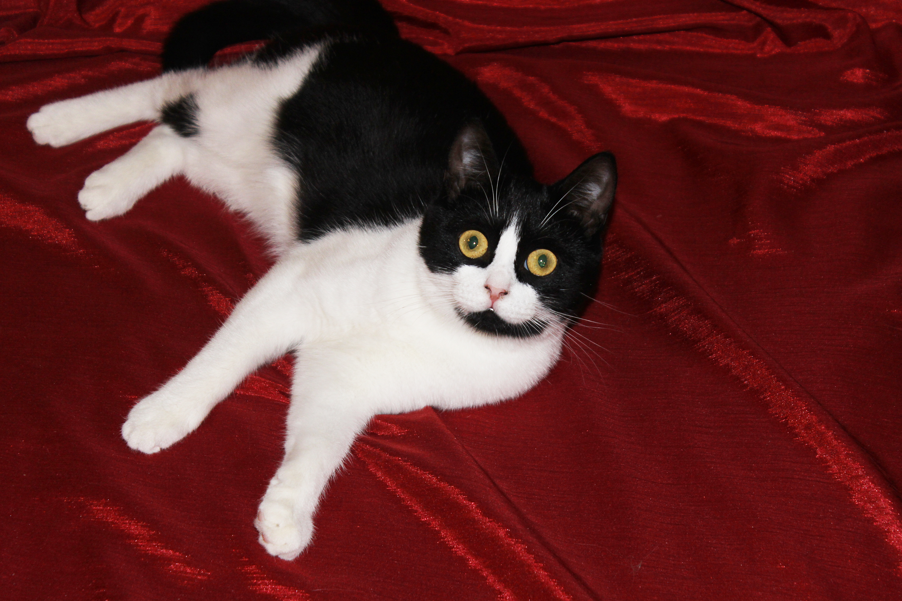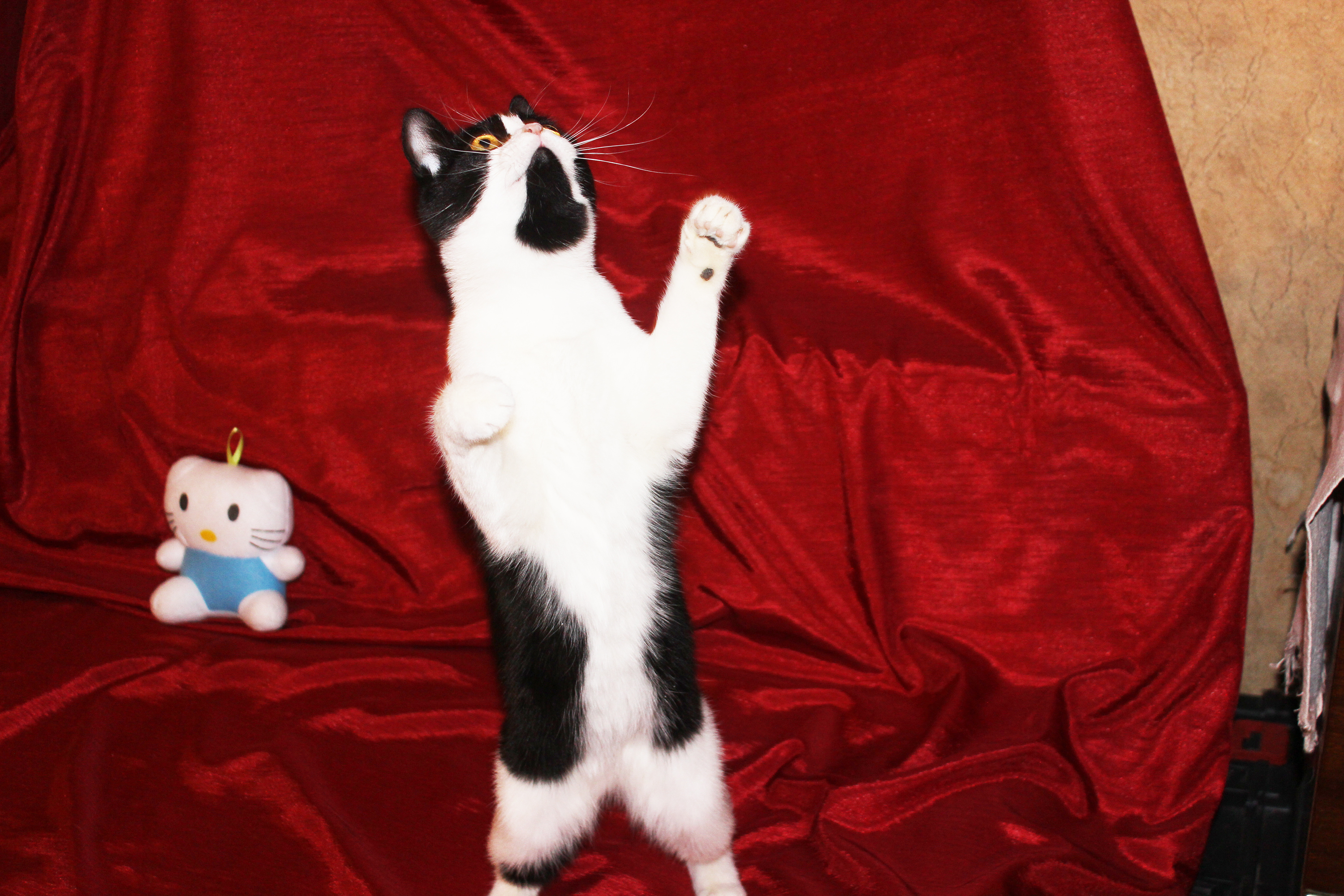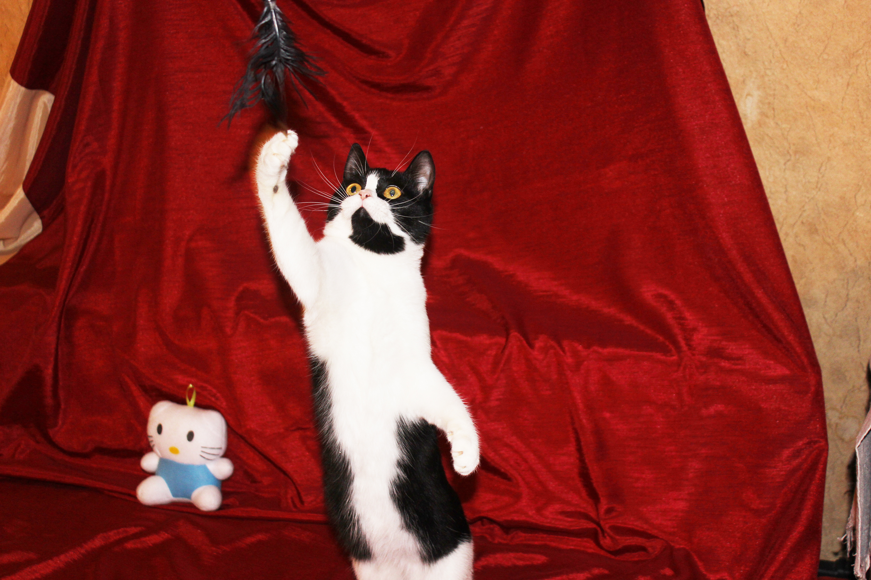 Любит хорошо и вкусно покушать, поиграть, с кошками очень дружит, с собаками не пересекается, хоть пока и живёт с ними, но не конфликтует.