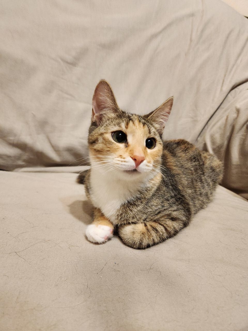 Ласковая и добрая, дружит с кошками. Очень хотелось бы, чтобы в новом доме у неё был друг или подружка.