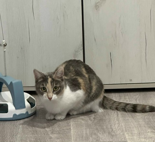 Кошечка стеснительная, скромная, нужно немного времени освоится! Песенки поет громко. Молоденькая, примерно годик.