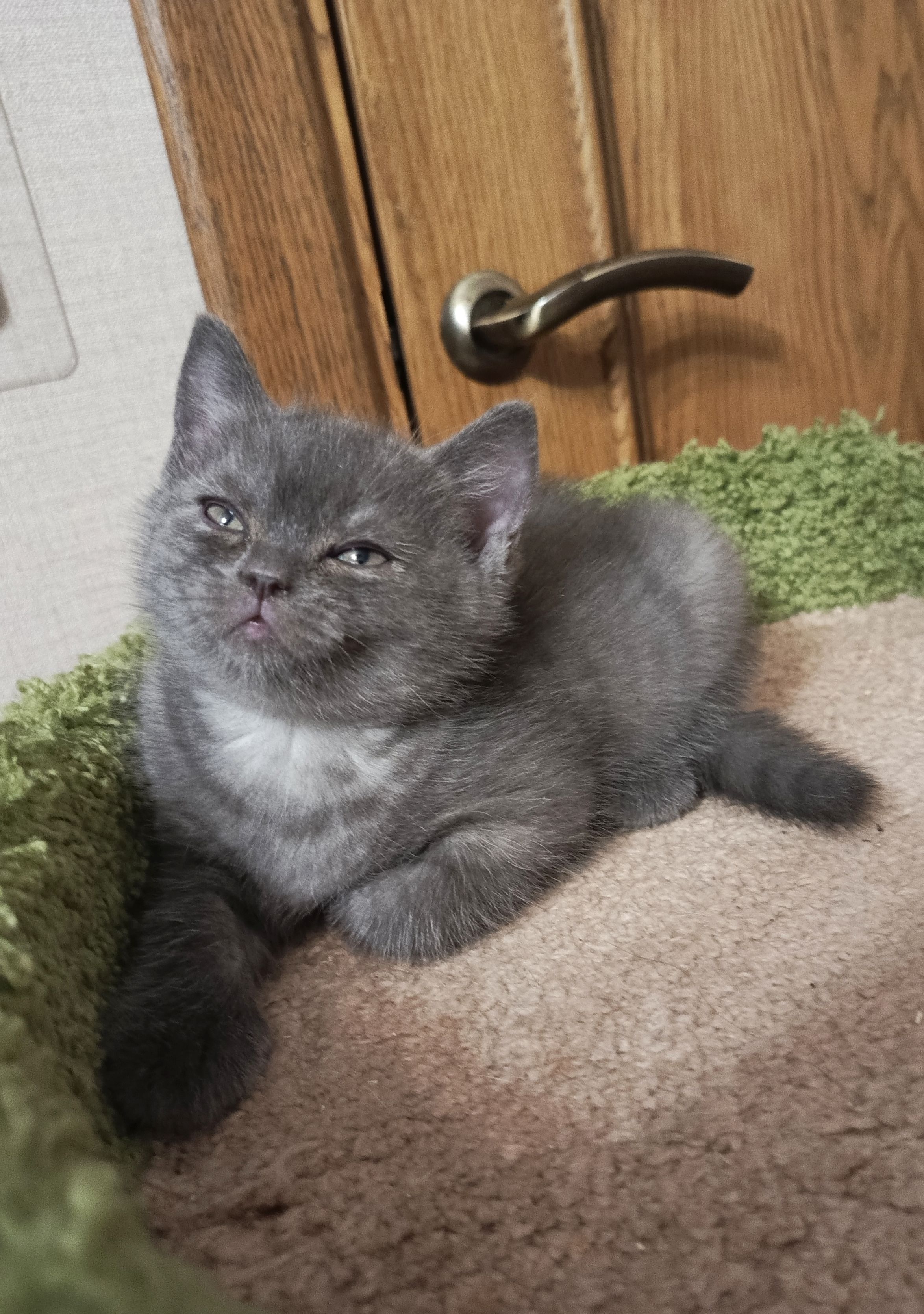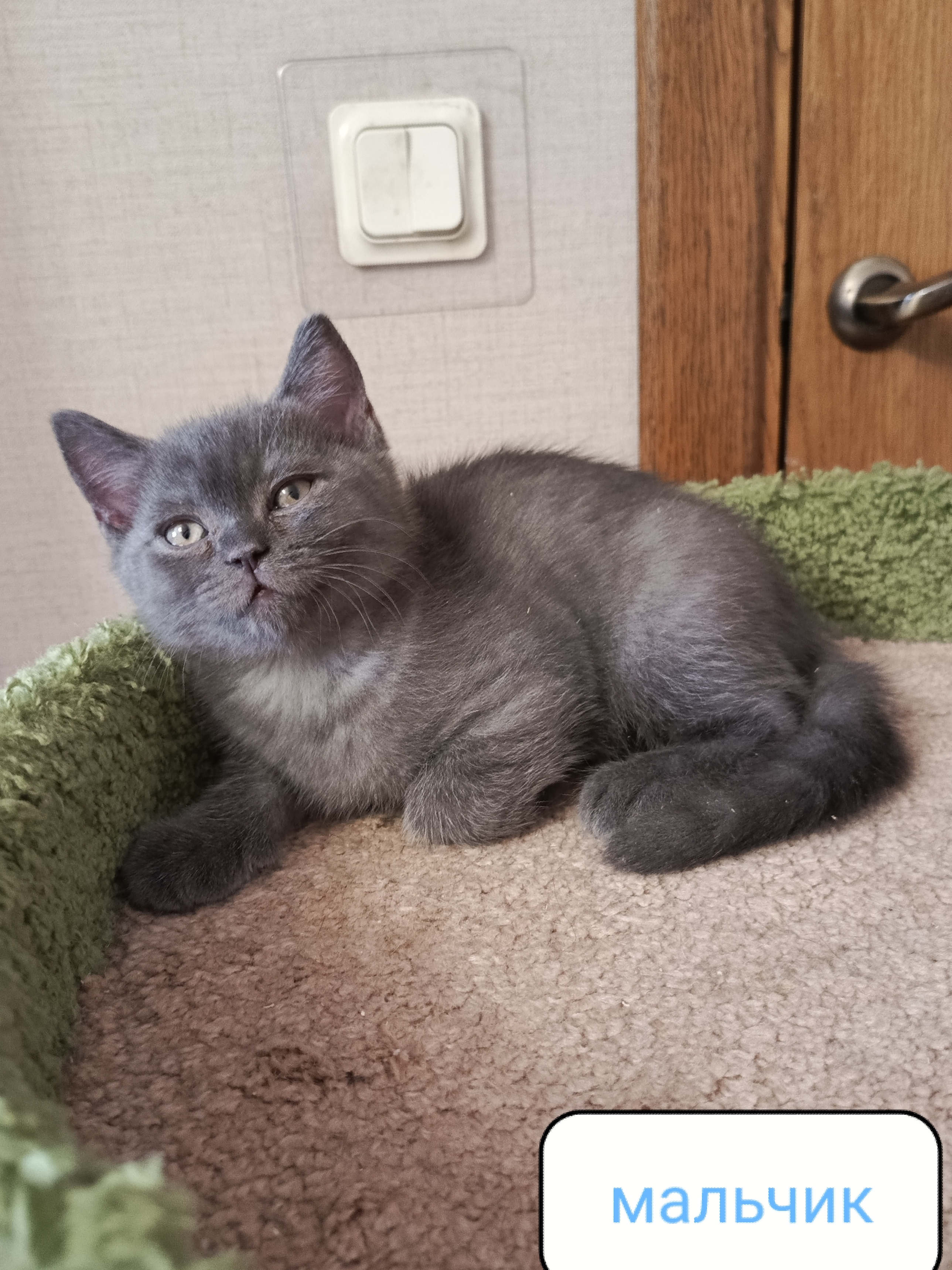 Очаровательный британский котёнок д. р. 081225 рождён от клубных родителей, крупный, окрас голубой на серебре, имеет отличные породные данные, воспитан, толстенький, знает лоток и когтеточку.