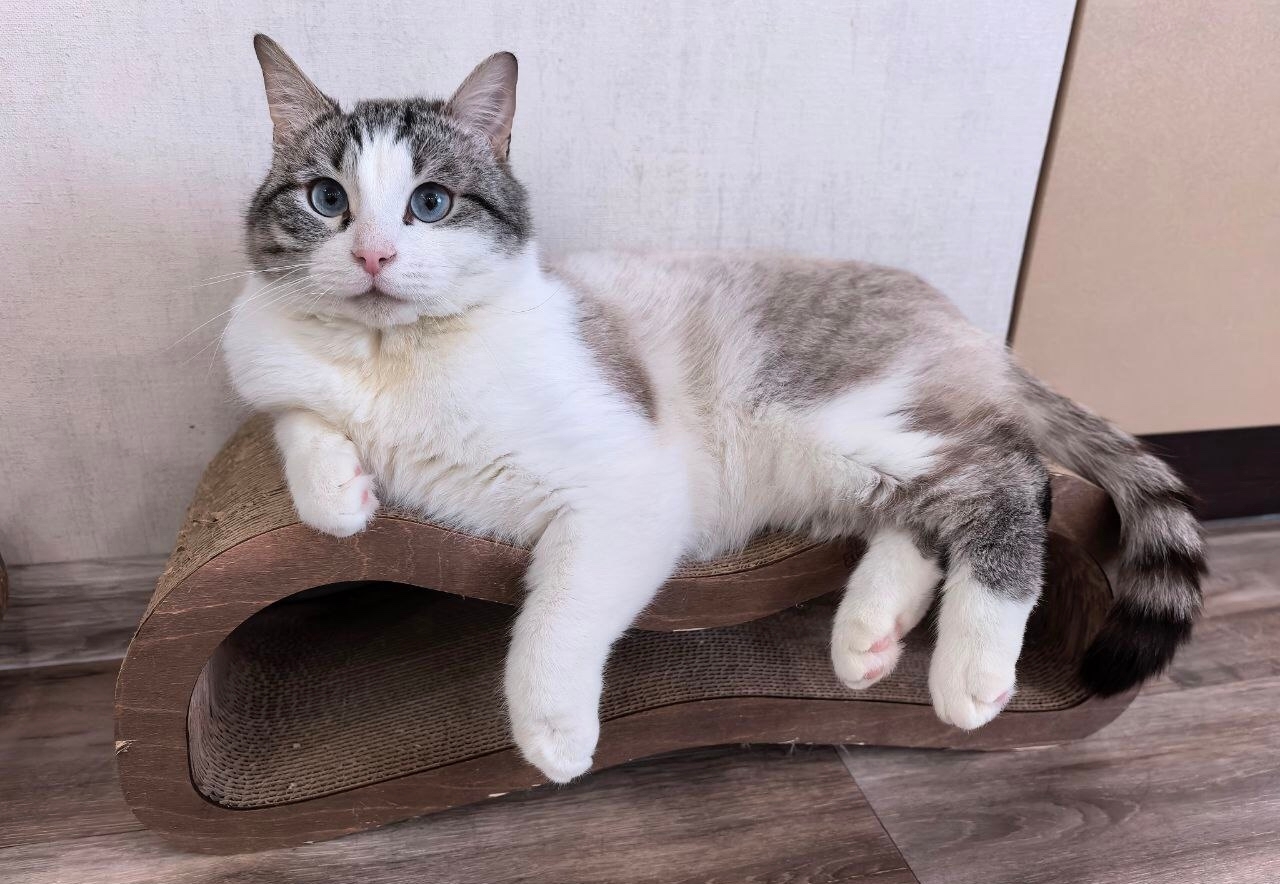 Савелий молодой котик, ему около года, он обработан, кастрирован, прекрасно ходит в лоточек.