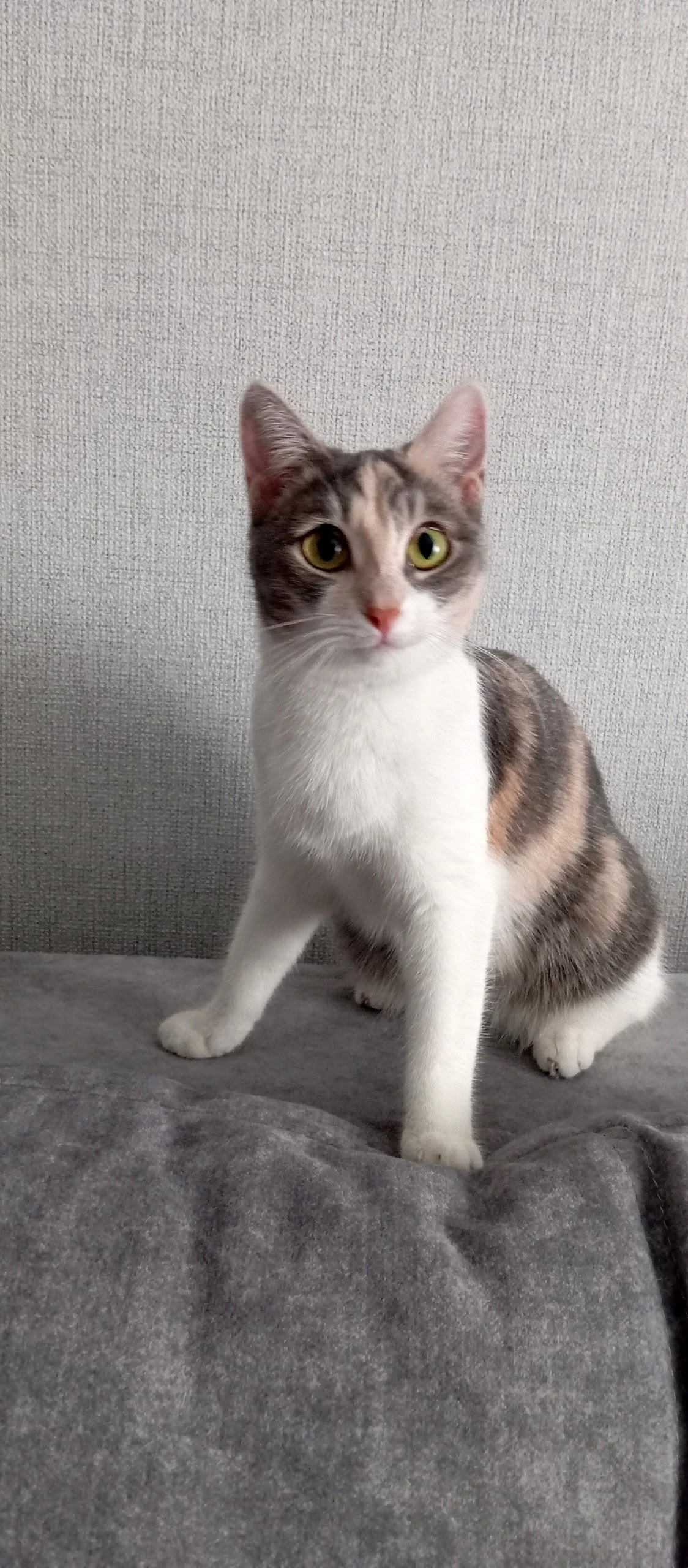 Кошечка стеснительная, скромная, нужно немного времени освоится! Песенки поет громко. Молоденькая, примерно годик.