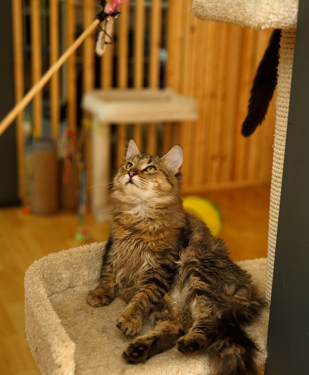 Он обожает устраивать игры, носиться по кафе и подставлять свою пушистую голову под поглаживания. Каждый день с Мартышкиным — это маленькое приключение! 💖✨