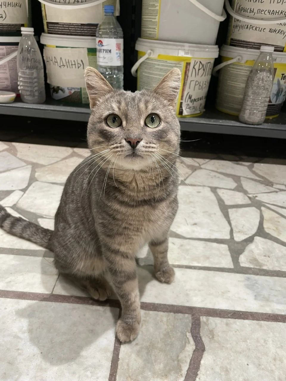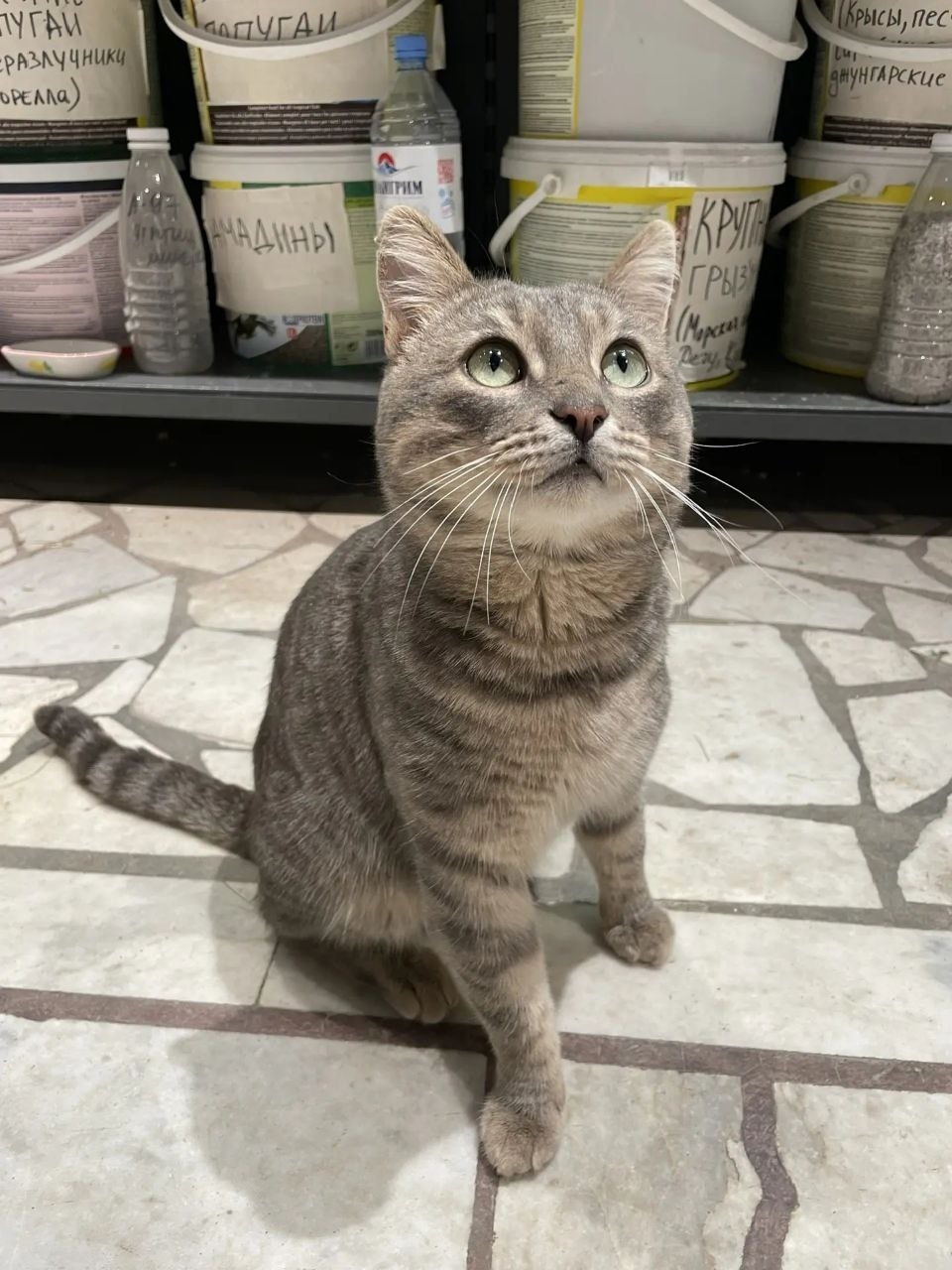 Серый, красивый, молодой котик ищет своего человека, который заберёт его домой.