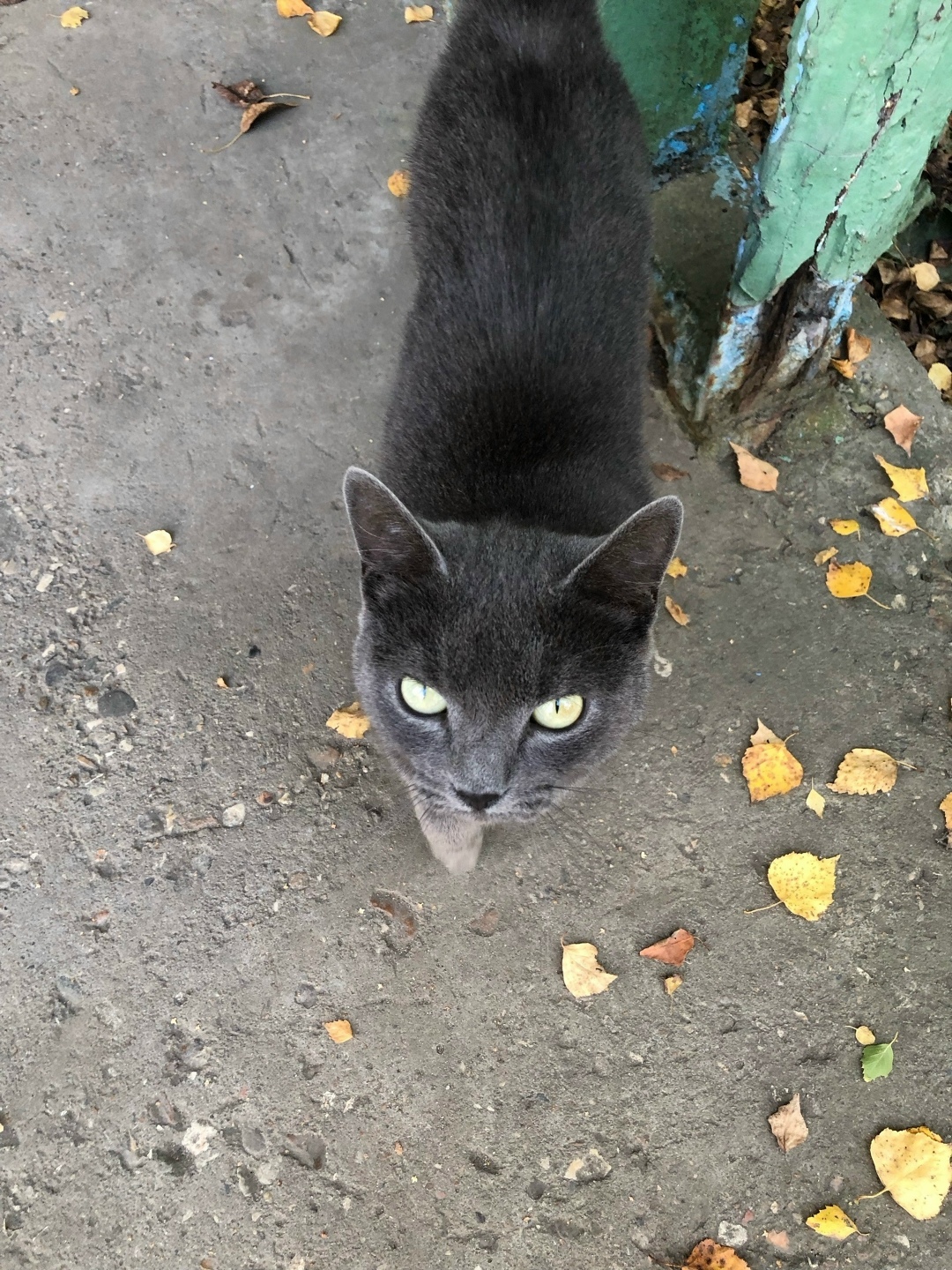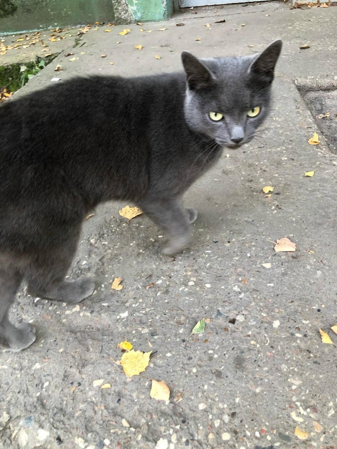 Кошка - серая Шеба, ласковая, ручная, явно брошенная кошка живет на улице. Возраст не меньше 2,5 лет, выглядит молодой.
