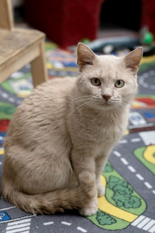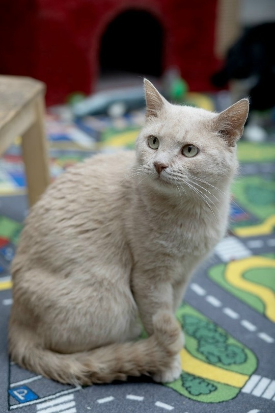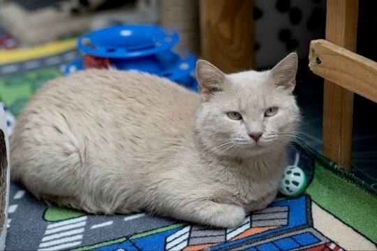 Крем — это настоящий сладкий десерт среди котов. У него мягкая кремовая шерсть и невероятно добрый характер. Он обожает играть с игрушками, исследовать новые уголки и, конечно же, проводить время рядом с людьми. Крем — отличный компаньон, который всегда готов поддержать вас своим мурчанием и лаской.