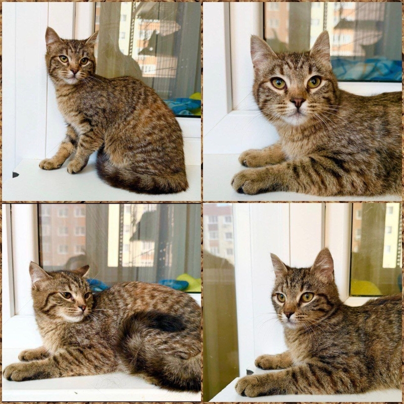 💜 Плюша - ласковая и умная крошка с выразительными глазами и интересной мимикой. Девочке 6-7 месяцев, шерсть яркого табби окраса, в золотистые и серебристые полоски.