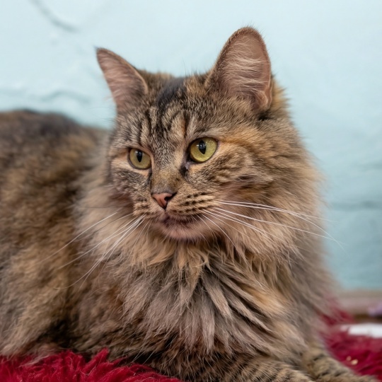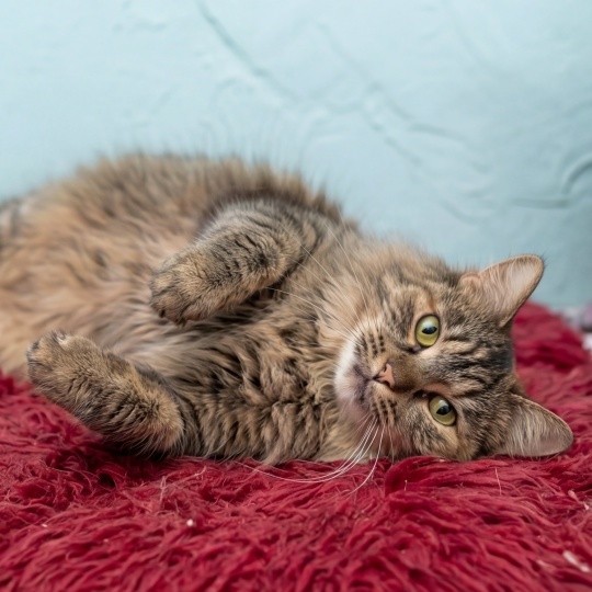 К людям относится тепло, гладить разрешает, но строго по регламенту, если переборщите , то получите лёгкое «фи» лапой.