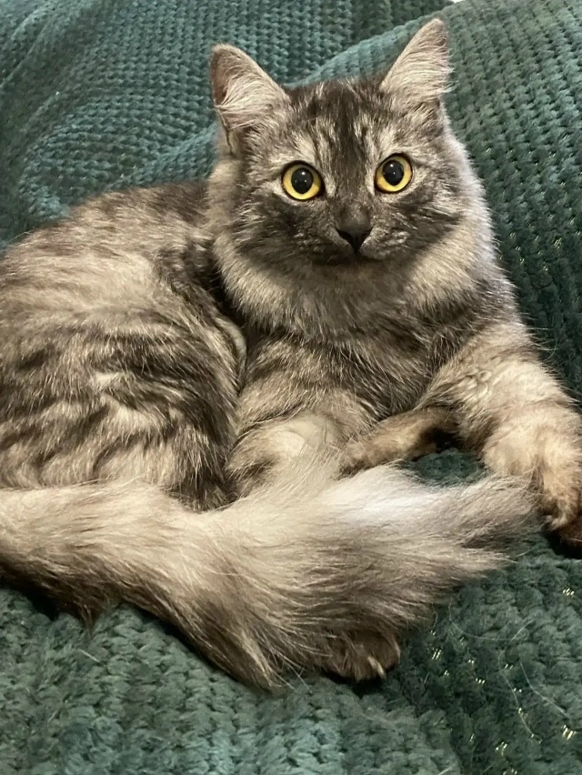 Очень красивая, в роскошной шубке редкого окраса черный дым.