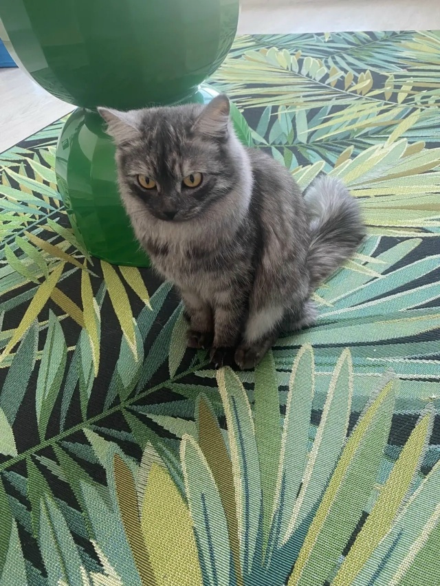 Отлично ладит с другими кошками, сразу начинает дружить и приглашать поиграть)